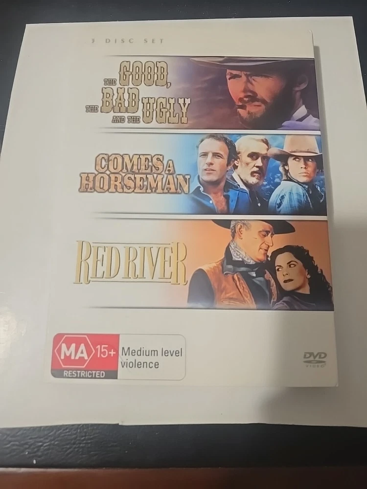 The Good, Bad And Ugly / Comes A Horseman / Red River Western Triple Pack DVD R4 is a must-have for fans of classic Western films. This box set features iconic actors like John Wayne, Clint Eastwood, and Jane Fonda, making it a timeless collection for any movie buff. With a MA15+ rating, this DVD set is perfect for those who enjoy action-packed stories set in the wild west. Get ready for hours of entertainment with these three unforgettable Westerns in one convenient package.