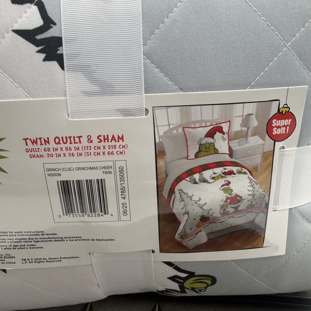 The Grinch Twin Quilt & Sham Set is a festive addition to any bedroom, featuring a Christmas theme with a pattern of The Grinch and Max. Made of polyester material, this set is machine washable and includes a quilted traditional style quilt with dimensions of 86 inches in length and 68 inches in width. Perfect for teens, adults, and kids alike, this multicolor quilt set is ideal for celebrating the holiday season in style. The set is part of the Franco Manufacturing Co brand and is sure to bring a touch of Christmas cheer to any room.