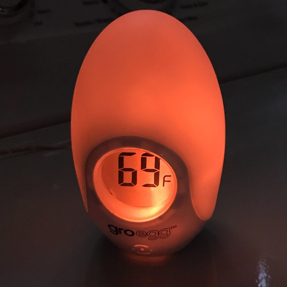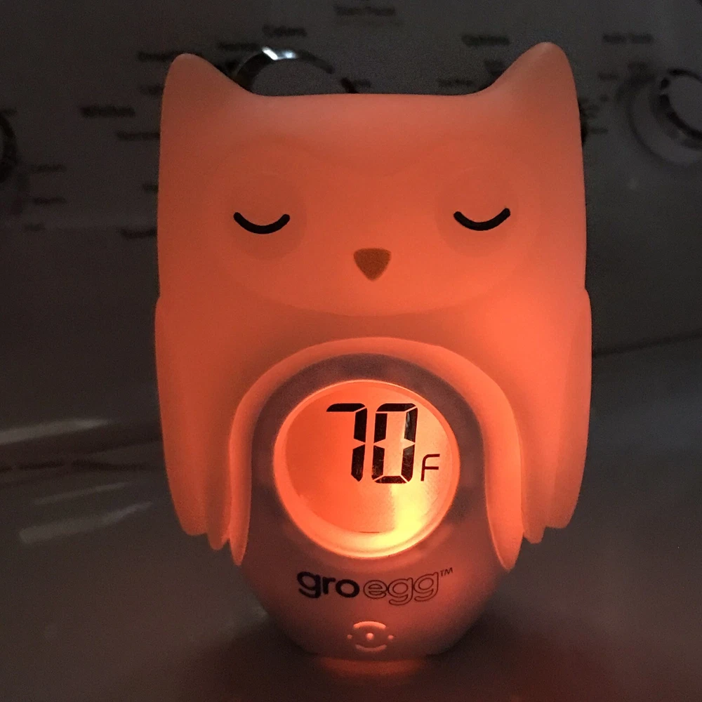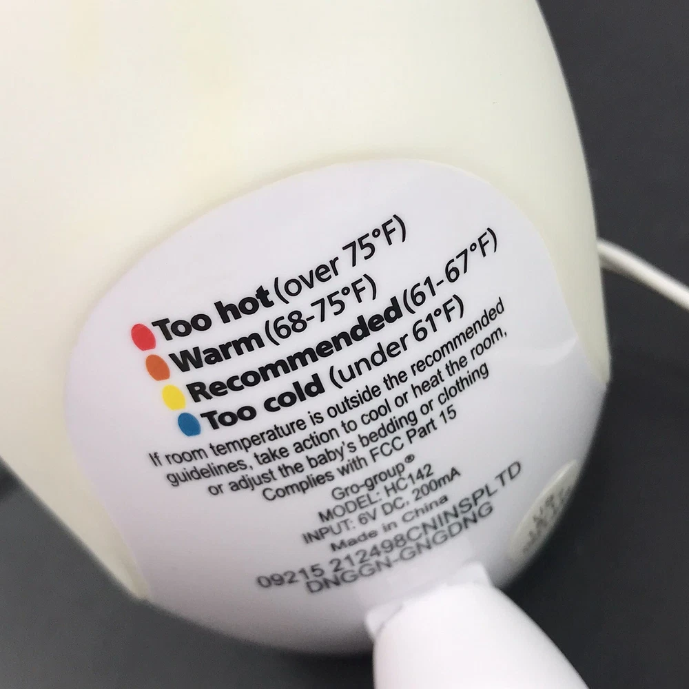 Introducing the Gro Company's Gro-Egg Color Digital Baby Kids Room Night Light Thermometer, a must-have for your little one's comfort and safety. This easy-to-understand color-coded system indicates the room temperature, ensuring your baby stays cozy and healthy all night long. With a digital thermometer and permanent back-lit LCD readout, you can easily monitor the room temperature and keep your baby warm and snug. The Gro-Egg is designed with a UK 3-pin standard plug type and comes with one Gro-Egg, one UK power plug, and one set of instructions. This baby thermometer is perfect for babies of all ages and genders, and it comes in a sleek white color that will complement any room decor.