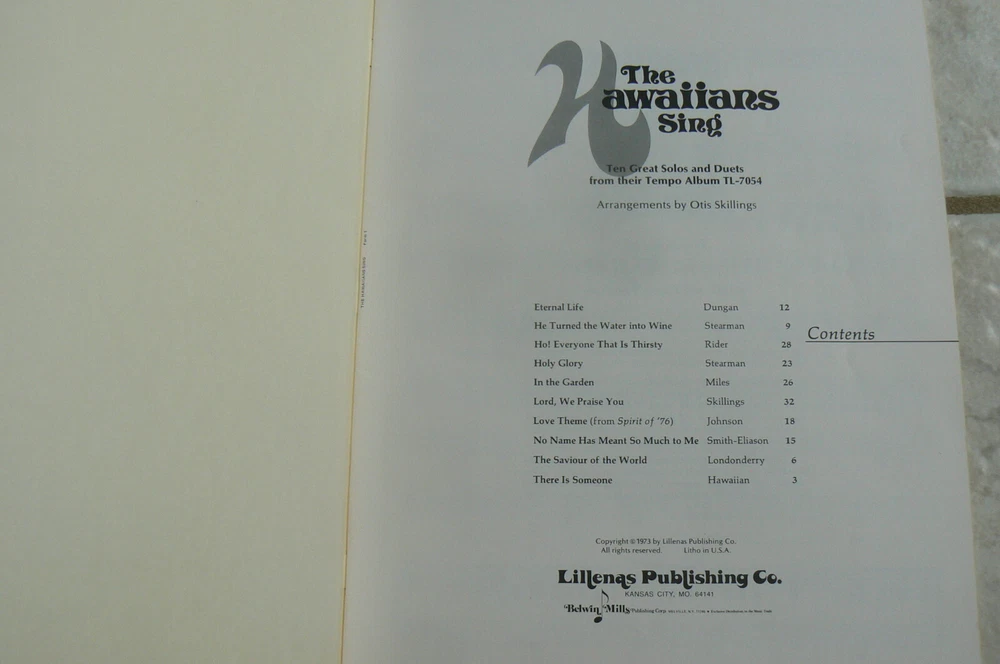 The Hawaiians Sing Ten Great Solos and Duets from Their Tempo Album with Piano Accompaniment & Guitar Chords Publisher: Lillenas Music, 1973 MB-321 This 32-page softcover is in like-new condition with all pages crisp, clean, and sturdily bound; even the cover is nice and smooth. The song titles are in the third photograph. Lots of great music here! You won't be disappointed! ~~~~~~~~~~~~ I'm listing MANY more books and other items. I'm happy to combine shipping. ~~~~~~~~~~~~~~~~~~~~~~~~~~~~ I normally mail ON the day I receive payment if it's received before 1 p.m. central time, and the next day if it's later than 1. Please take a look at my other listings; I'm listing many school books (and other items) and am happy to combine shipping! Items from smoke-free, pet-free home. Thanks so much for your time! Before leaving your feedback, if for any reason you feel I did not deserve or earn 5 stars in each category, please let me have the opportunity to make it right. I want every transaction to be 5-star worthy! Thanks so much! :)