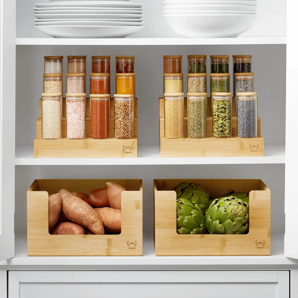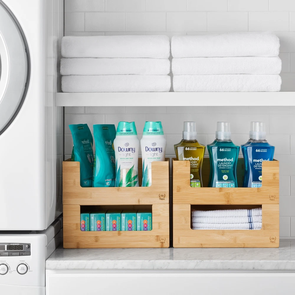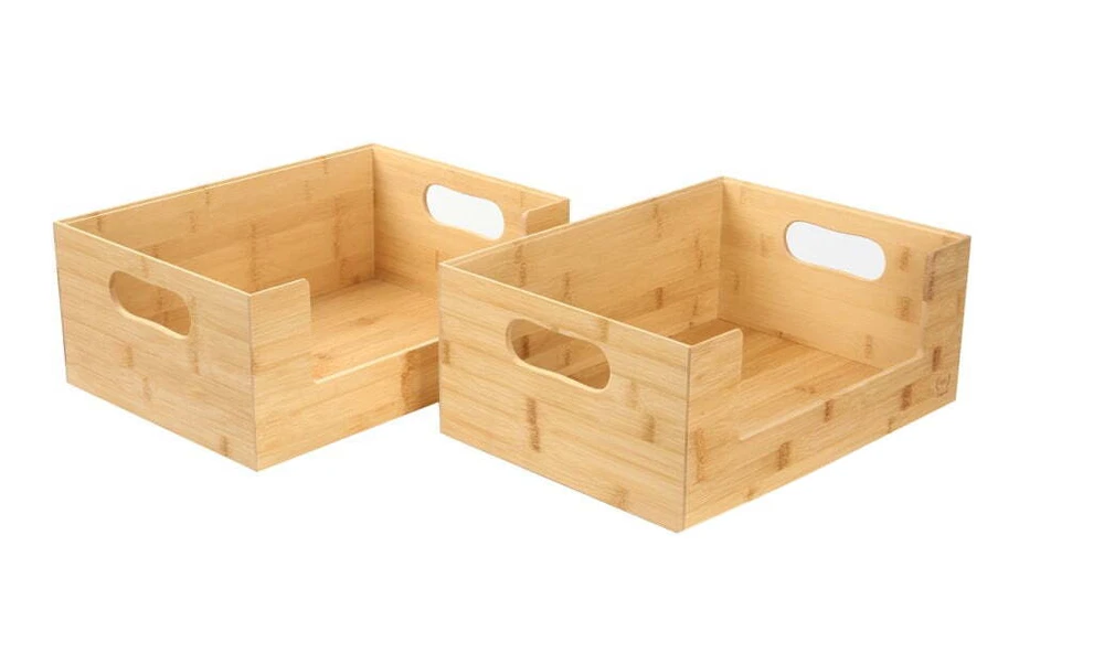 The Home Edit Bamboo Open Front medium 2-piece storage bins are perfect to help you kick off your next organizing adventure. The Home Edit Bamboo Open Front Medium Brown Storage Bins are perfect for organizing the Pantry, Home Office, Bathroom and More. Here at The Home Edit we believe that any space can function efficiently while looking beautiful with smart systems on your side. Great gift for Adults! Included are 2 medium size Bamboo Open Front bins (10.5" x 14.5" x 6") As seen on Netflix! Stackable Bin Mix and match with other The Home Edit Storage Solutions 2 open Front brown bins 10.5" x 14.5" x 6" Great for Kitchen, Pantry, Bathroom, Bedroom, and More! Adults, children, teenagers