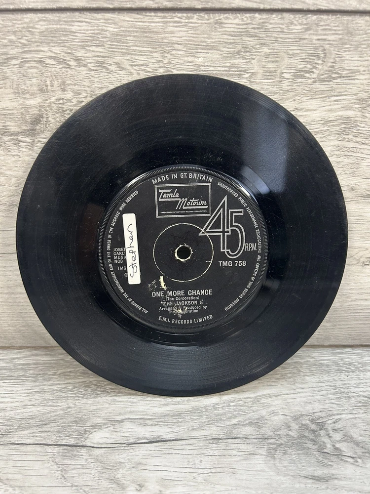 Style:SoulEAN:Does not applyCase Type:Paper SleeveRecord Size:7"Artist:The Jackson 5Colour:BlackMaterial:Vinylgtin13:Does not applyFormat:RecordType:SingleRecord Grading:Very Good (VG)Release Year:1970Genre:R&B & SoulSpeed:45 RPMRecord Label:Tamla MotownRelease Title:I’ll Be There / One More Chance