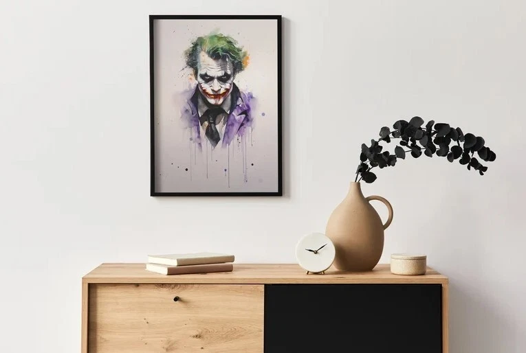 The Joker Watercolor Print, Gamer and Comic Book Lover Home Decor
