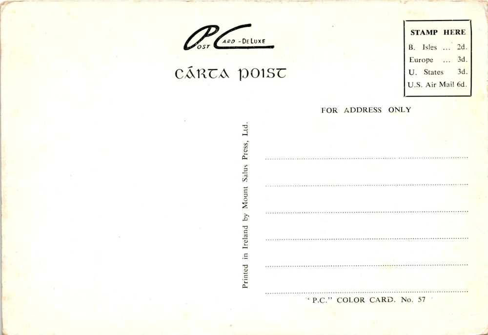 MAKE AN OFFER. THE MORE YOU BUY THE BETTER DEAL I WILL ACCEPT The postcard features a view from The Lake Hotel in Killarney, Ireland. Killarney is a popular tourist destination known for its beautiful lakes, mountains, and national park. The Lake Hotel is a historic hotel located on the shores of Lough Leane, the largest of Killarney's lakes.