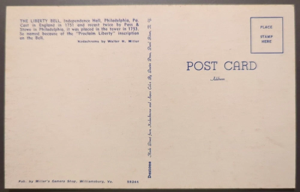 The Liberty Bell Independence Hall Philadelphia PA Pennsylvania Vintage Postcard. There may be wear on the edges or a bent or torn corner, staining or writing on the card, creasing, or the card may have a cancellation mark. Most of the postcards I sell are 50 to 100+ years old and will never be perfect. Please examine the photos carefully for condition information. All postcards with a value of less than $20 are shipped via eBay Standard Envelope with a 2 mm postcard sleeve and a piece of cardstock on either side, taped closed with masking tape and placed in a heavy cardboard mailer. Postcards with a value of more than $20 are sent Ground Advantage in a 2 mm postcard sleeve, sandwiched between cardboard and shipped in a padded polybag. Tracking is provided with either method.