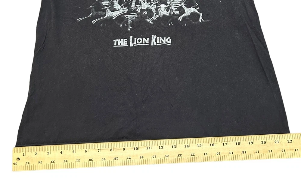 The Lion King T-shirt Men Size Medium Black Short Sleeve Crew Neck Graphic Tee Brand: The Lion King Style: Graphic tee Material: Additional Details: Condition: Good used condition. Normal signs of wear and tear, there is fading throughout. Please study pictures carefully before purchasing Please review the pictures carefully for condition, details, and measurements. We do our best to describe accurately all of our items. The Approx. Measurements Laying Flat (not doubled) : 25" Top to Bottom Length 18.5" Shoulder to shoulder 21" Armpit to Armpit 22" Width at Hip Feel free to ask any questions. Thank you for visiting our store! 6