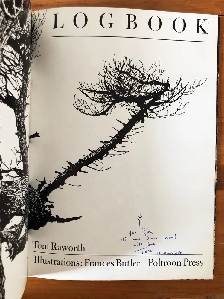 Very good condition. Some tanning of the cover wrapping. Author inscription. First Edition, 1976. Limited Edition. 1/500 copies printed offset and bound in custom art-paper covered stiff wrappers. Illustrations throughout by Frances Butler. Wayward pagination, as if being a gathering of stray pages from a larger body of work.
