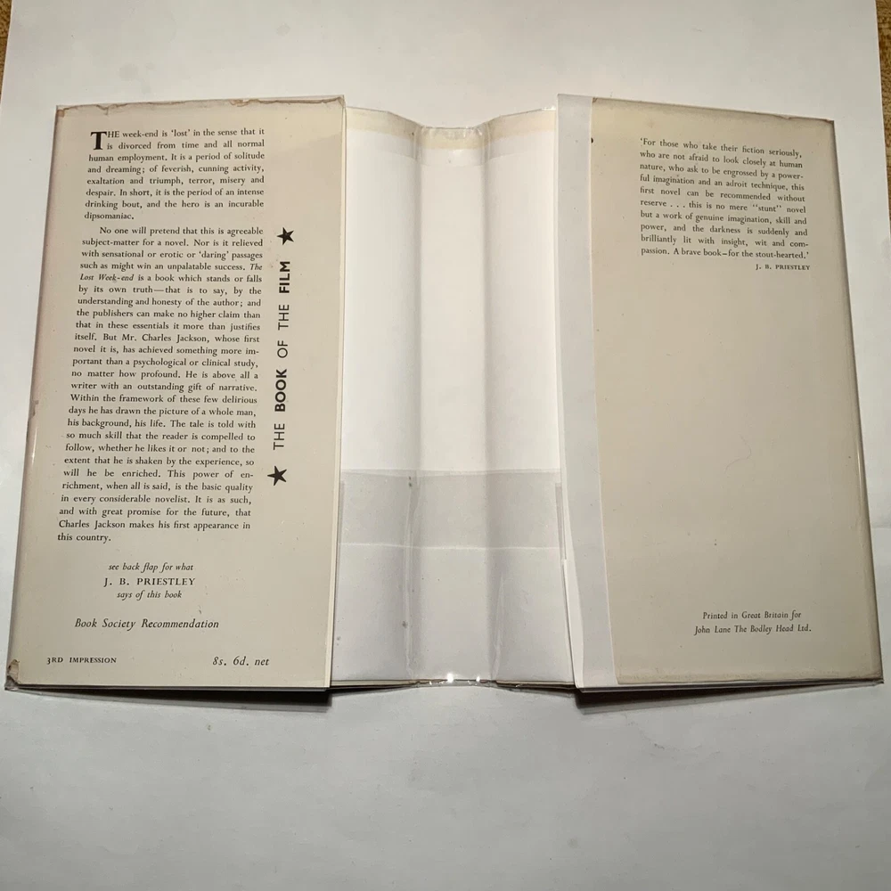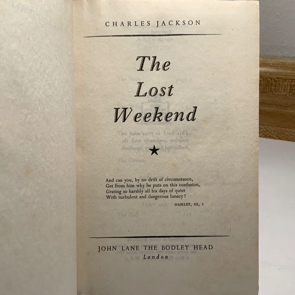 The Lost Weekend by Charles Jackson 1946 The Bodley Head, 1st UK ed. / 2nd Print
