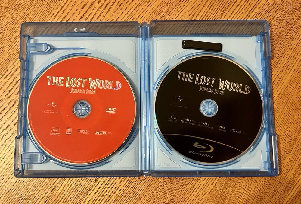 Immerse yourself in the breathtaking world of Jurassic Park with this deluxe edition Blu-ray/DVD 2-disc set of "The Lost World: Jurassic Park." Directed by Steven Allan Spielberg, this cinematic movement cult classic is rated PG-13 and features English, French, and Spanish subtitles. The movie is produced by Gerald R Molen and Colin Wilson, with an aspect ratio of 16:9 and a release year of 2013. This Blu-ray/DVD set comes in a Blu-ray case and includes commentary, a book, full screen, retrospective interviews, behind the scenes featurette, additional scenes, captioned, widescreen, deleted scenes, and with subtitles. The movie features Julianne Moore and Jeff Goldblum, and is a must-have for fans of the Jurassic Park franchise.