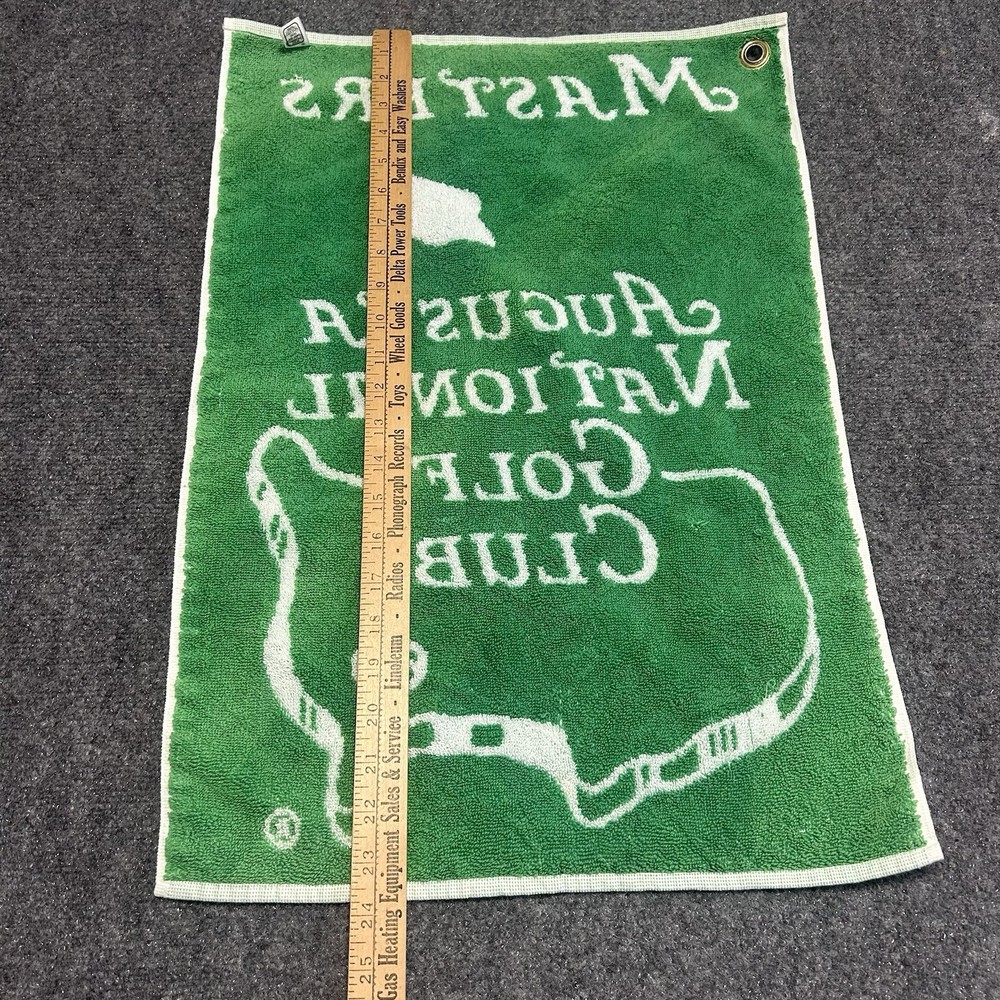The Masters Tournament Green & White Golf Bag Caddy Towel is a high-quality, soft cotton towel featuring an embroidered logo and a textured design. With dimensions of 14"x22", this rectangular golf towel is a perfect accessory for any golfer, showcasing the iconic Masters branding and colors of green and white. The towel includes a grommet for easy attachment to a golf bag, making it a convenient and stylish addition to your golfing gear. Made in the United States, this golf bag towel is a must-have for any golfer looking to add a touch of sophistication to their equipment.
