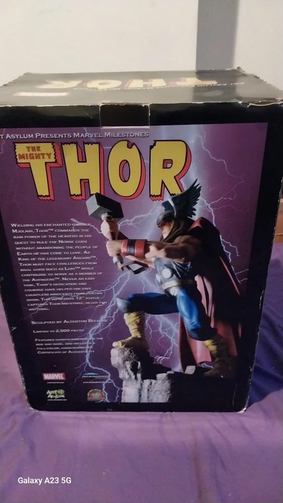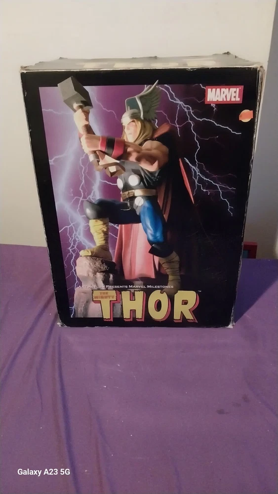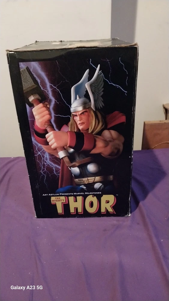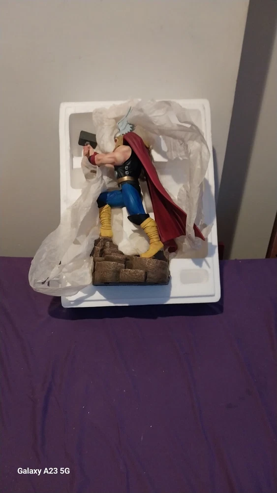Brand new statue of the mighty thor 12inch very heavy statue never displayed or played with just kept in storage for x amount of time taken out of box for photos.