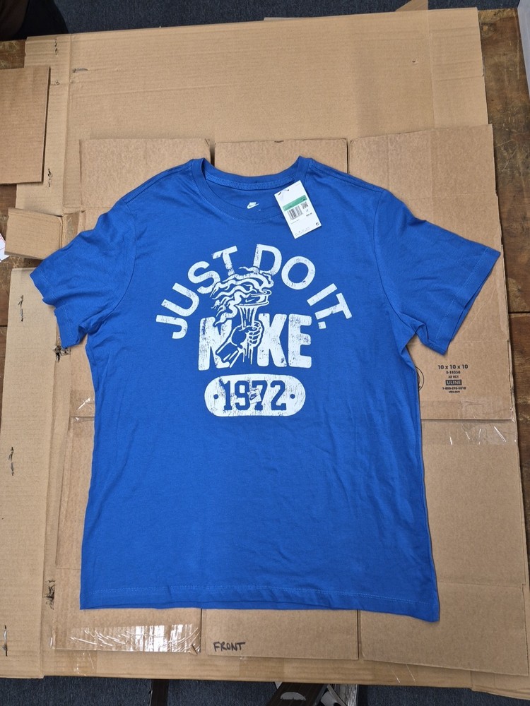 The Nike Tee Shirt Mens XL Black Logo Swoosh Gold Crew Neck T AR5004-016 . Condition is New with tags. Shipped with USPS Ground Advantage.