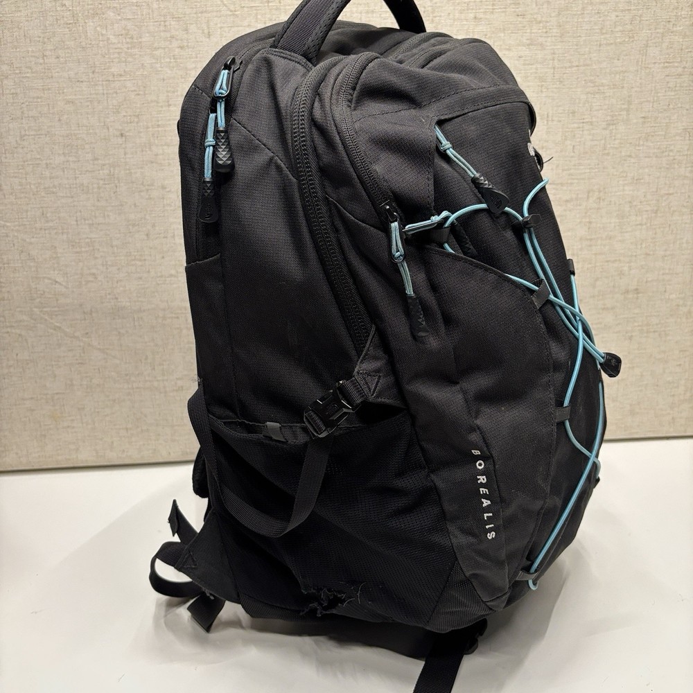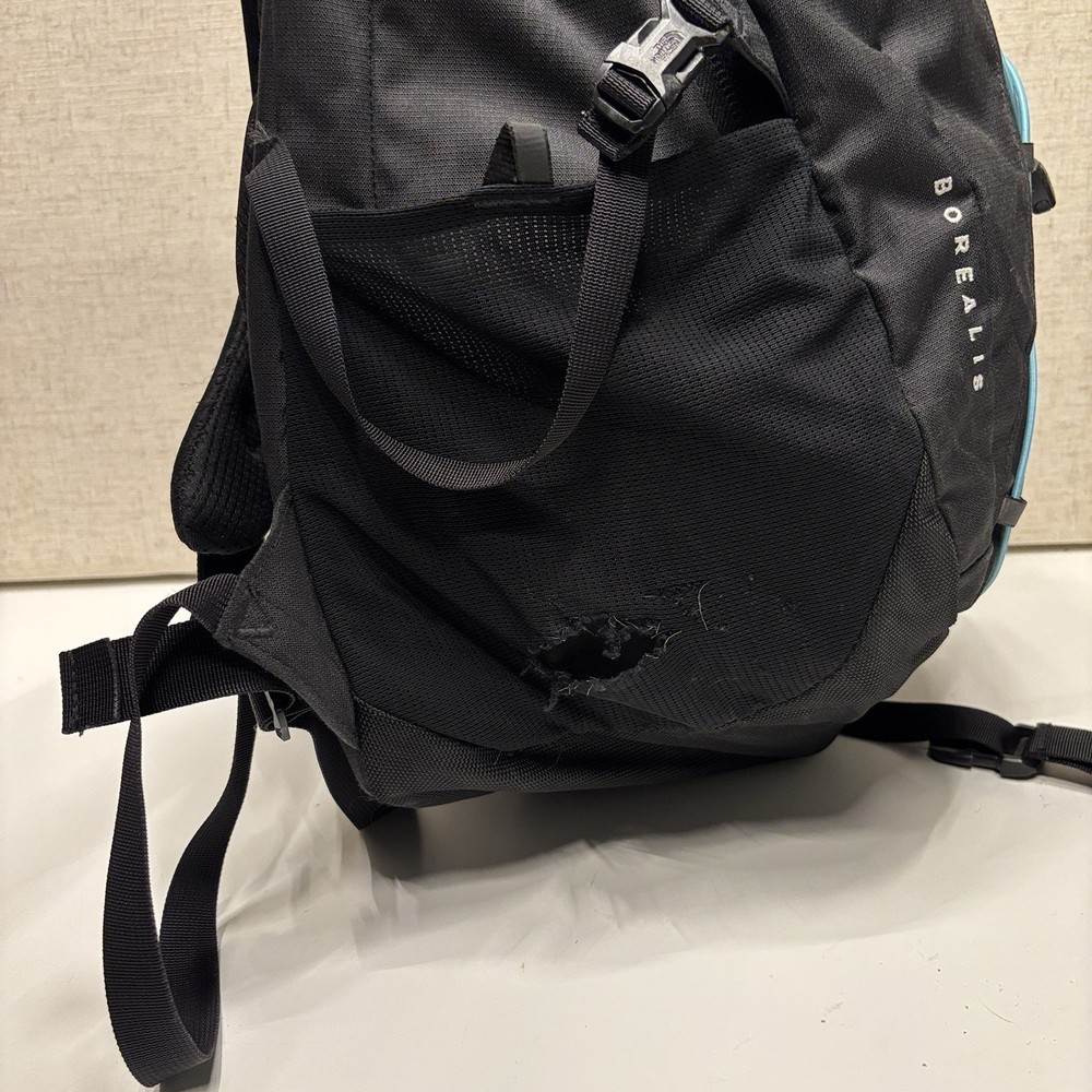 The North Face Borealis Backpack Black Outdoor School Work Laptop Hiking Ripstop Bottle pocket has holes Please see more photos
