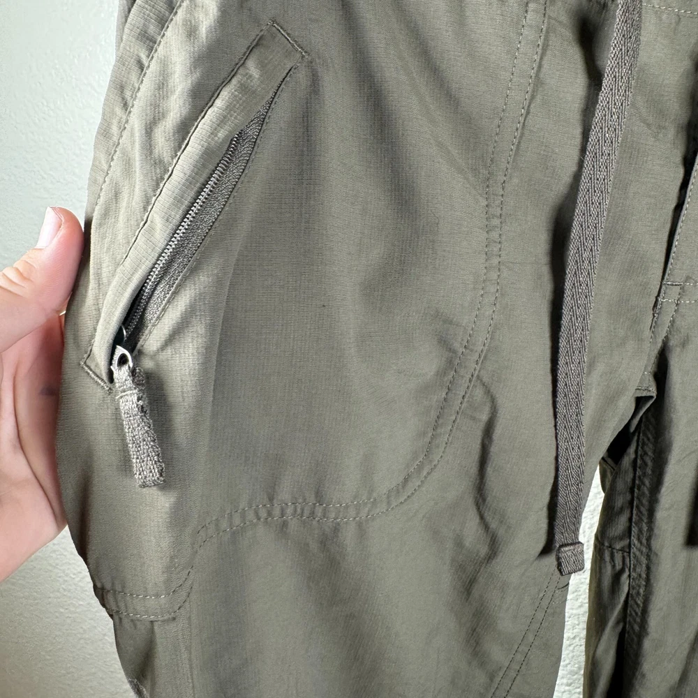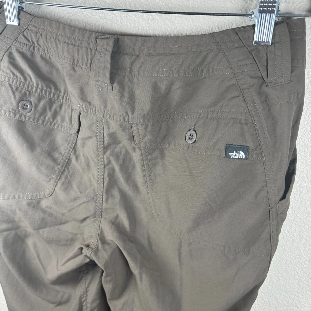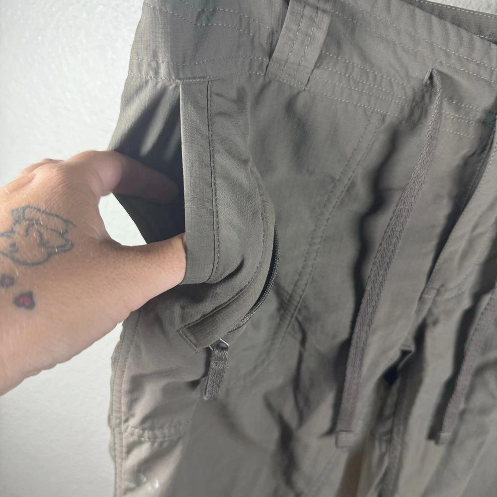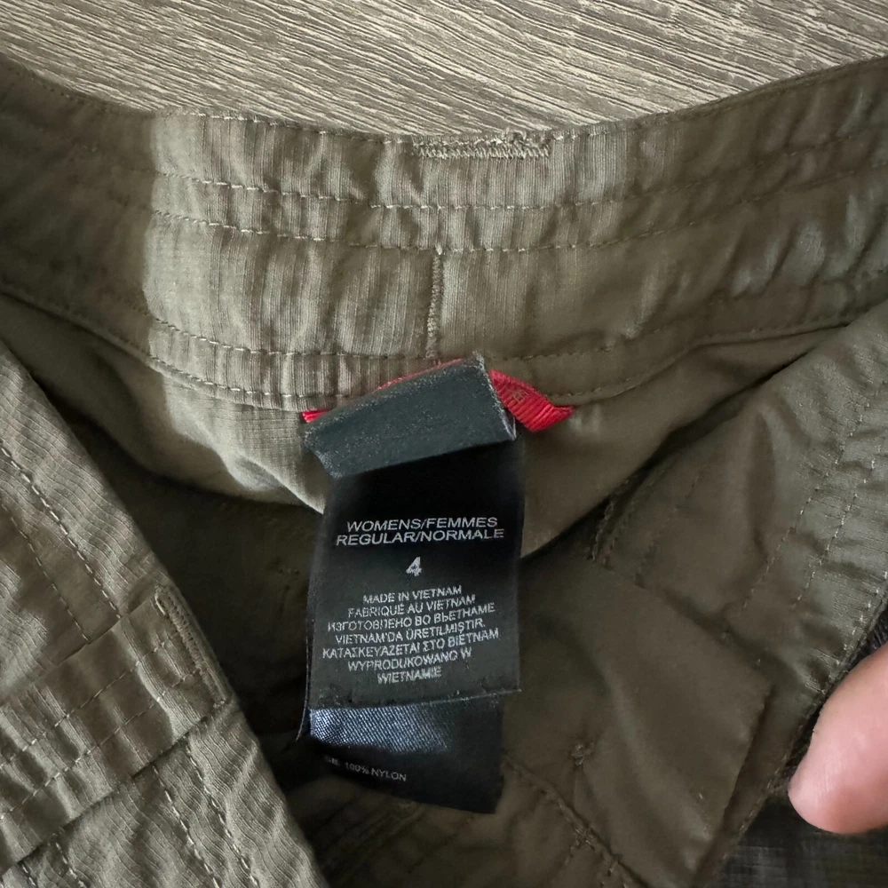 Brand: The NorthFace Size: 4 Features: Convertible Roll up Drawstring Waist Low rise Slant side large pocket Small zipper pocket on one side Cargo Style Lightweight Provides UPF 50+ Sun Protection Two back pockets Condition: Preowned excellent condition. No rips/stains/holes Approximate Measurements pictured in the last photo. Please compare these to similiar items you own to ensure proper fit. Preowned items are cleaned to industry standards. They may have smell of detergent/fabric softener All new items may be stored with preowned items that have been washed or have a scent. New items may have a scent of other items/detergent *Items stored in a non smoking environment but pet friendly home