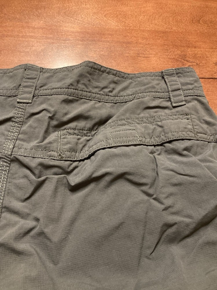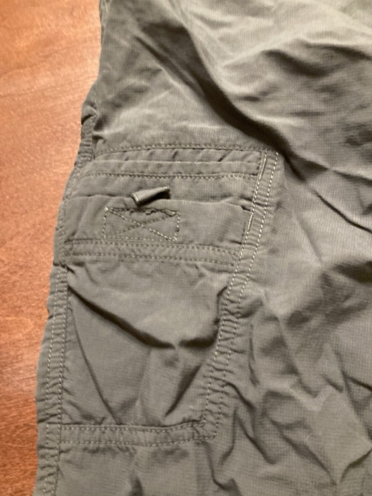 The North Face shorts for men are perfect for outdoor activities such as hiking, camping, and fishing. These shorts feature a stretch fabric that allows for comfortable movement, pockets for storing essentials, and a flat front design. The microfiber fabric is lightweight and easy to care for, making them a great choice for travel or workwear. The dark fabric wash adds to the classic look, while the logo accents provide a touch of style. These shorts are suitable for all seasons, but are ideal for summer, fall, and spring. There is no size tag so the size is estimated and may not be 100% accurate