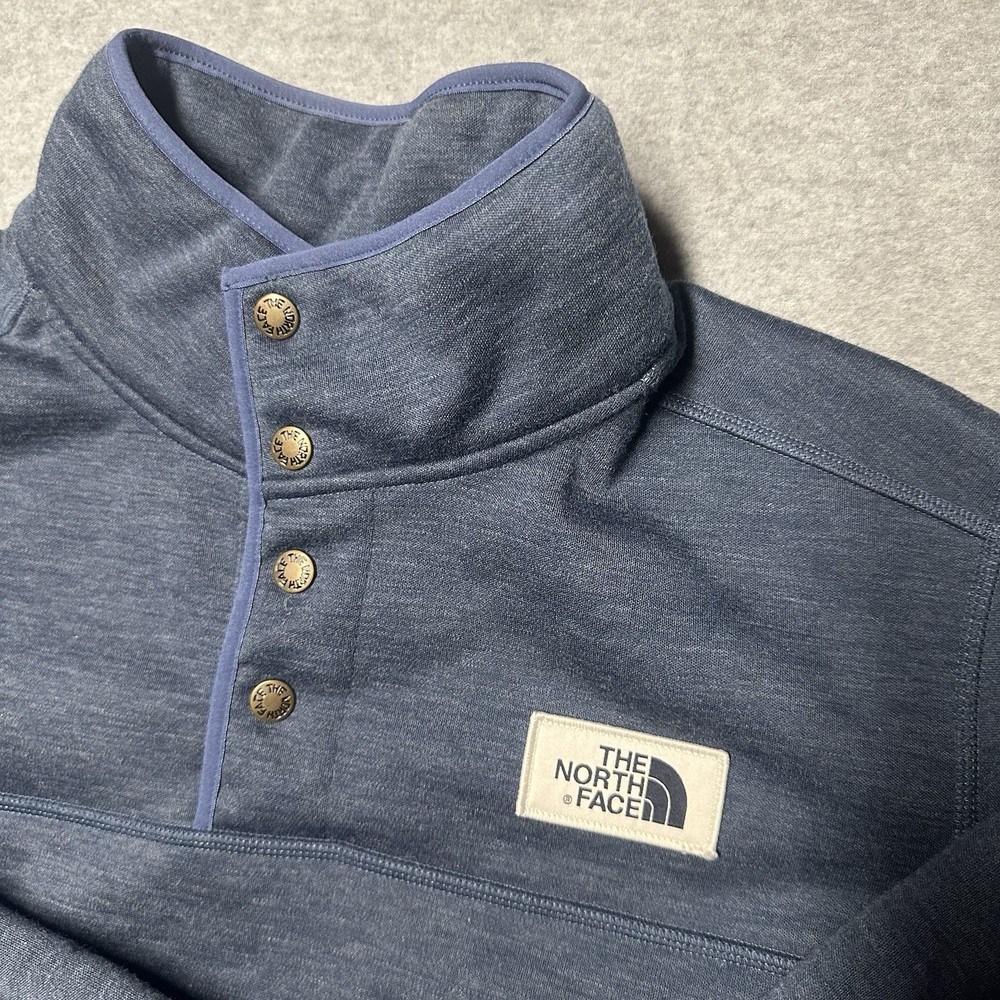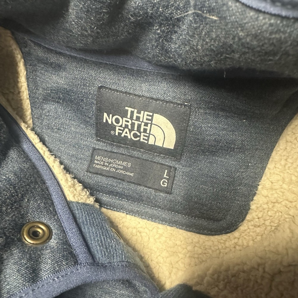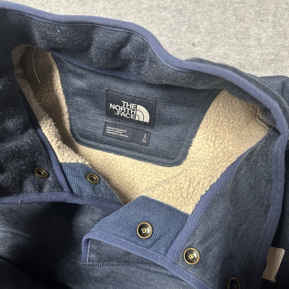The North Face Men's Large Sherpa Patrol 1/4 Snap Sweater in Blue is a stylish and versatile addition to any wardrobe. Made of high-quality polyester fleece, this sweater is perfect for cooler weather and outdoor activities. The snap closure, stretch fabric, and pockets add practicality for everyday wear. Whether you're running errands, working out, or relaxing with friends, this sweater offers both comfort and style. The North Face logo accents give it a classic touch, while the solid blue color makes it easy to pair with a variety of outfits. Worn 2 times and has been hanging in my closet since. My loss your gain as retail is $99.