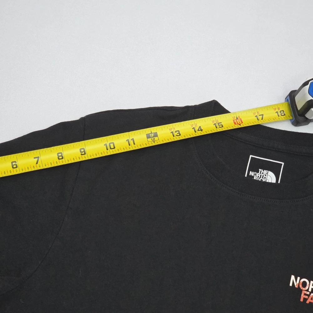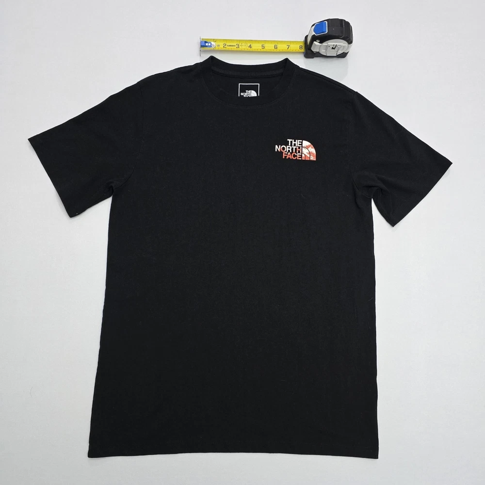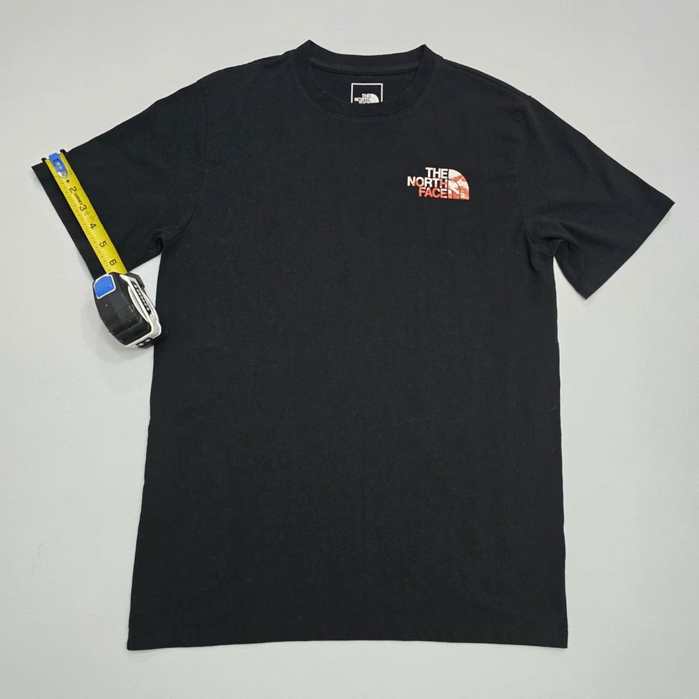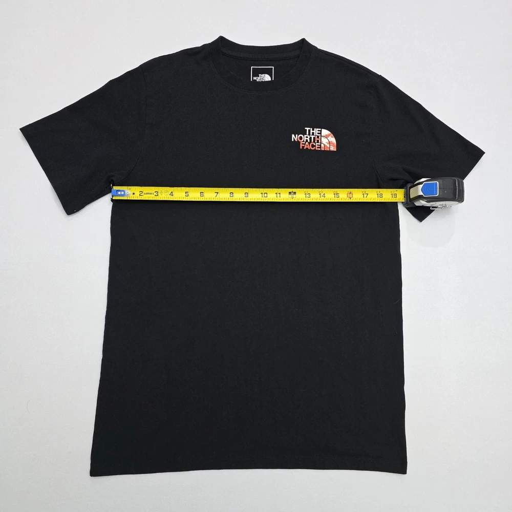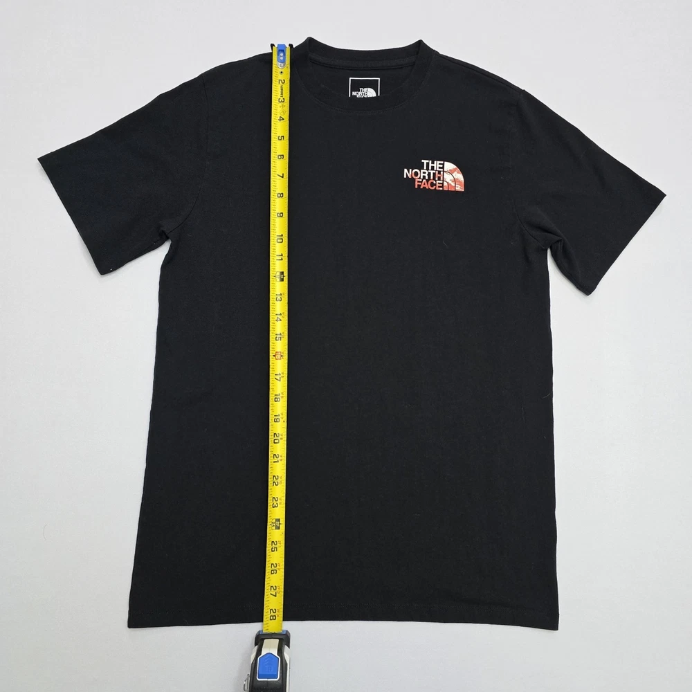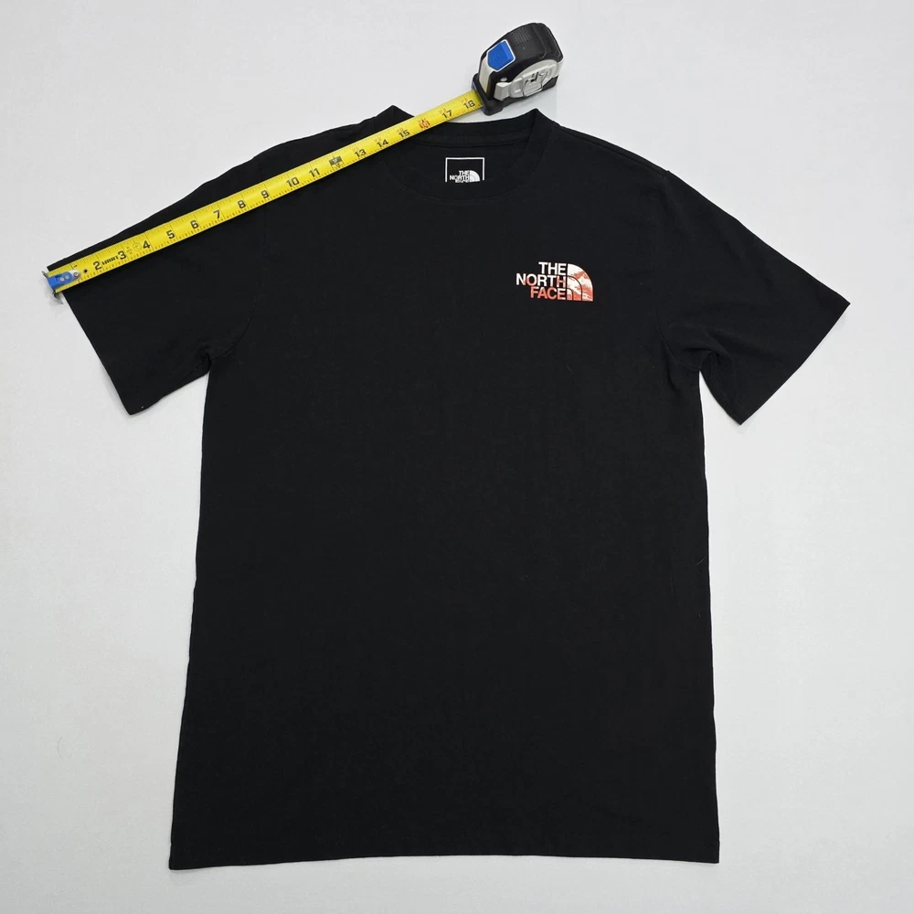 The North Face Men's Short-Sleeve Graphic T-Shirt in size medium is a classic and stylish addition to any man's wardrobe. With its iconic brand logo and sleek black color, this tee is perfect for casual everyday wear. The short sleeves provide comfort and breathability, making it ideal for layering or wearing on its own. Made from high-quality materials, this t-shirt ensures both durability and style for the modern man on the go. See Photos For EXACT Measurements