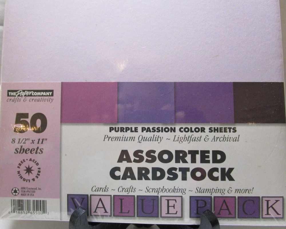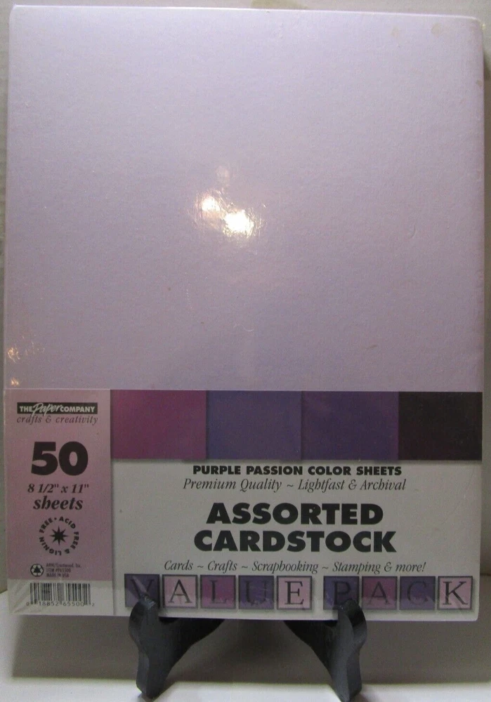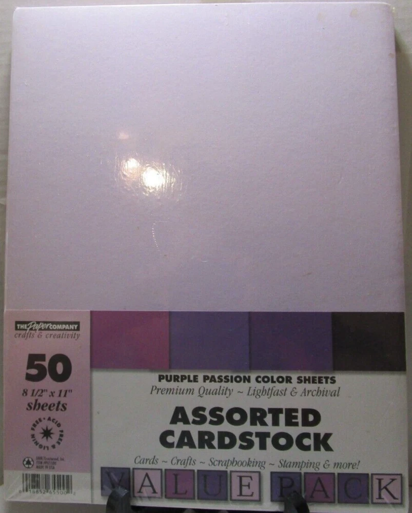 The Paper Company acid free, lignan free assorted cardstock - Purple Passion Colors. 50 sheets, 8 1/2 X 11, 10 of each color. New. Please see my other items for sale. I am always willing to combine shipping to save money. Thanks for looking!!