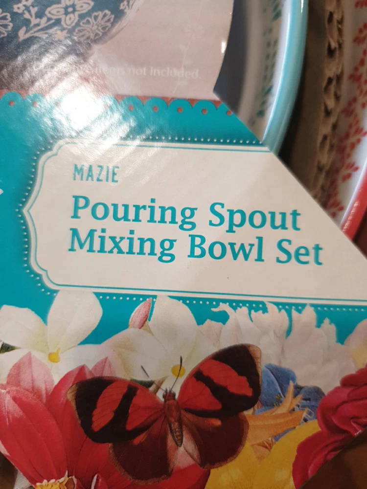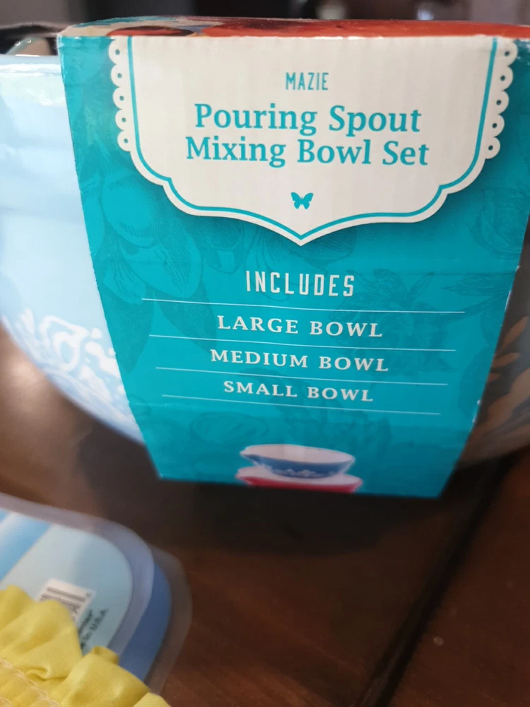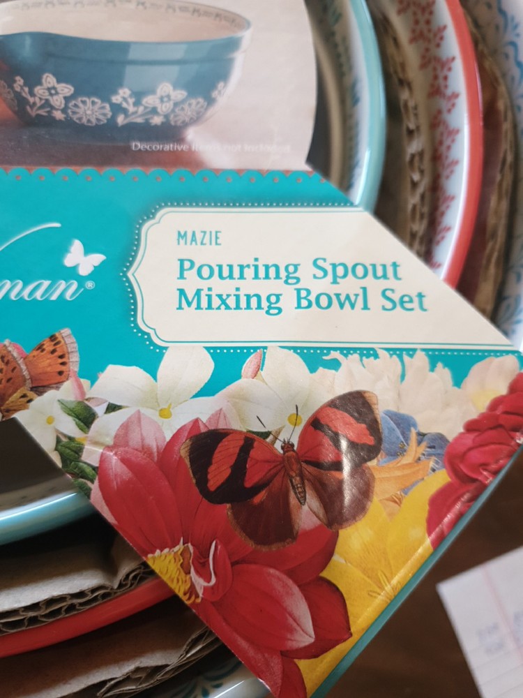 The Pioneer Woman Mazie Collection 3-Piece Nesting Mixing Bowl Set with Pour Spout – Stylish and Functional Batter Bowls for Baking and Prep – Vibrant Floral Design – Durable and Easy to Clean