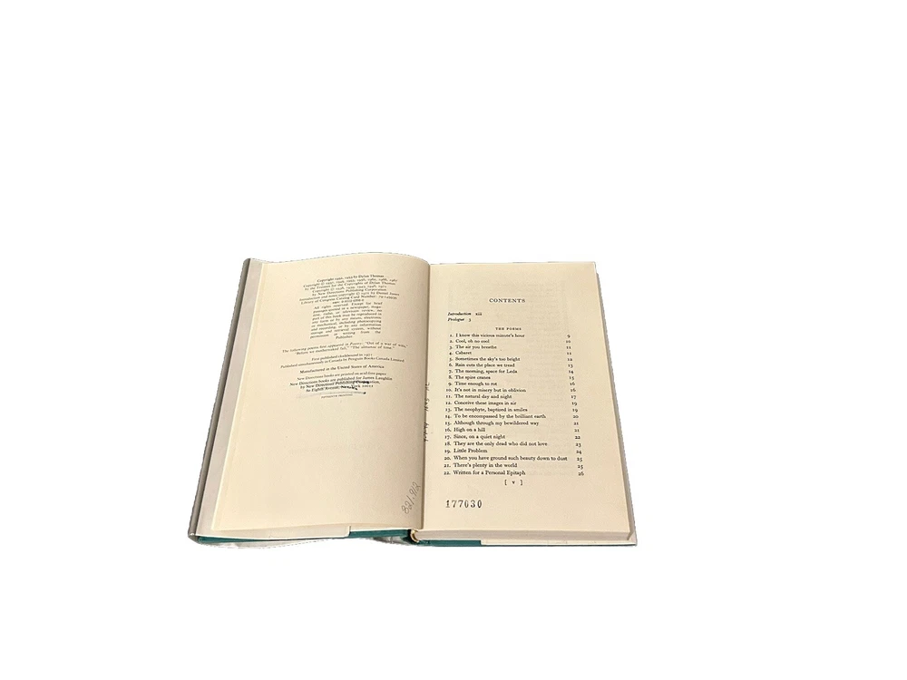 The product is "The Poems of Dylan Thomas" by Dylan Thomas, a revised edition published in 1971 by New Directions Publishing Corporation. This hardcover book features a dust jacket and is a vintage fifteenth printing. It contains a collection of poetry by Dylan Thomas, intended for young adults and adults, and originally written in English. The book measures 0.1 inches in length, width, and height, weighing 20 oz, with 1 page of content.