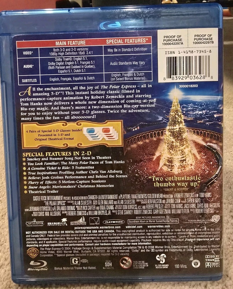 VGUC Region A Anaglyph 3-D blu-ray, does not include red/blue glasses. Can also be played in 2D. One light scratch about 1 to 2 cm long, otherwise would have listed as EUC. See picture.