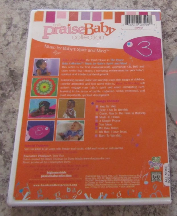 Movie/TV Title:The Praise Baby Collection: Born to WorshipRegion Code:DVD: 1 (US, Canada...)UPC:0660518265997Studio:Brentwoodgtin13:0660518265997Genre:Children'sSub-Genre:Music Video (Concert/Performance)Format:DVD