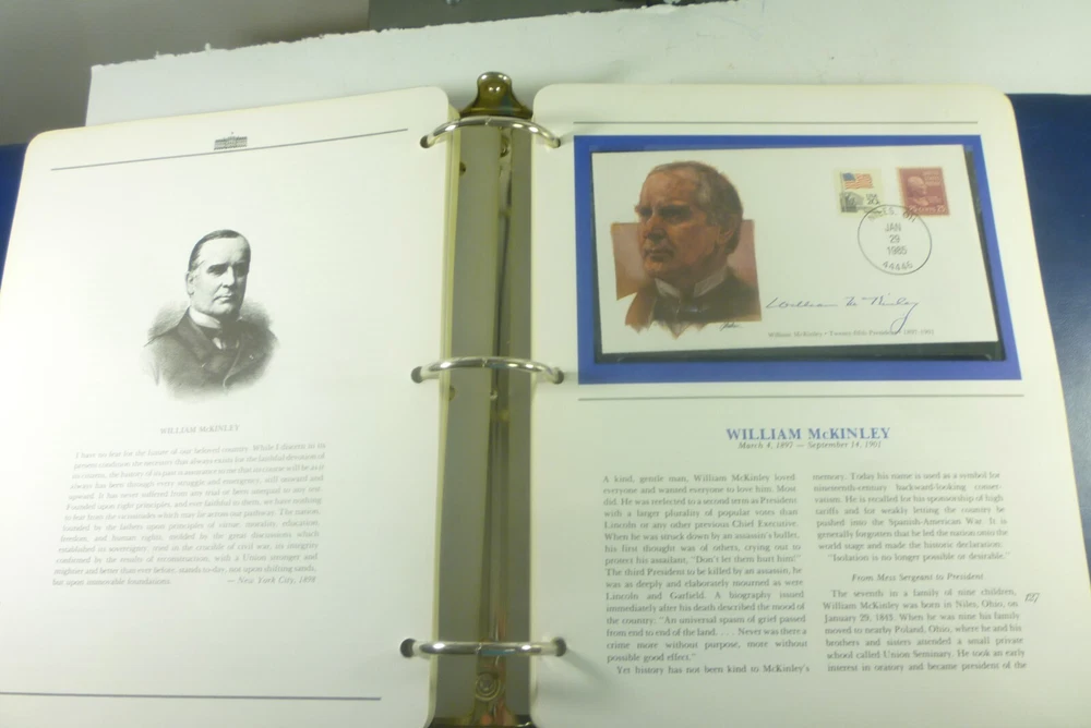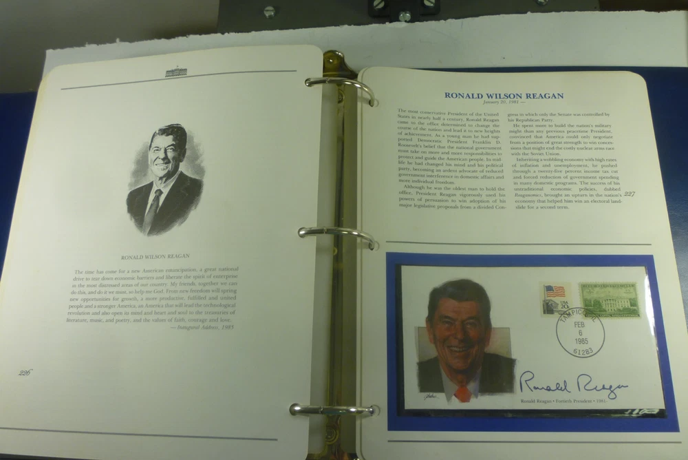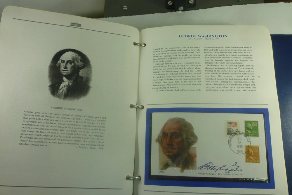 Description: You are bidding on a The Presidents of the United States of America Album with FDC's Fleetwood. This set goes through Reagan. Lots of interesting information provided for each President. Please see the pictures for more details. Shipping includes tracking and Delivery Confirmation. No disappointments here. Buy with confidence from someone who has a proven track record on Ebay. All of our buyers get friendly, prompt, and clear communication from us. We pack every item carefully and securely, ship quickly, and guarantee everything we sell. Shipping discount for multiple items. If you win multiple items please wait for an invoice rather than paying. Please see our other auctions for more stamps and collectibles.