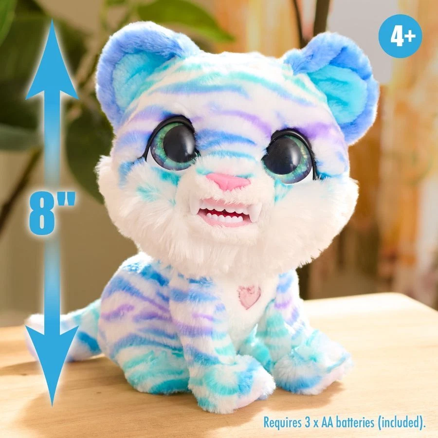 Give a warm home to the adorable furReal Lil Wilds North The Sabertooth Kitty Interactive Pet. This interactive pet has been stuck in the arctic cold for too long. When North’s teeth chatter and she shivers with cold, give her a hug. Stroke her super soft blue and white fur. As she fills with warmth and love, the heart on her chest will light up. Every time she gets chilly, simply snuggle her again until she feels the glow of love and happiness. North responds to kids’ affection with over 35 playful sound-and-motion combinations. She can be turned on and off by flipping the switch on the back of her head. Requires 3 x AA batteries (included). Great for birthdays and everyday celebrations for kids ages 4 years and up. On Dec 23, 2024 at 18:13:40 PST, seller added the following information: