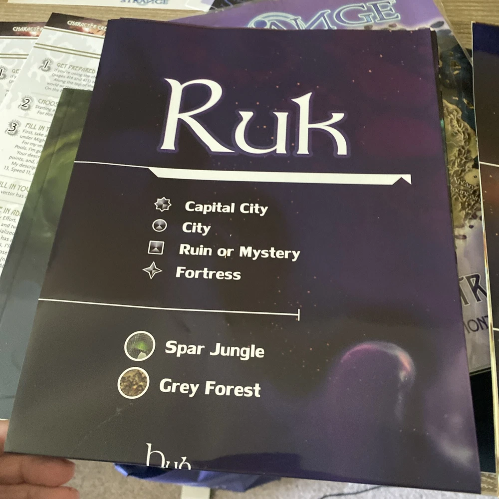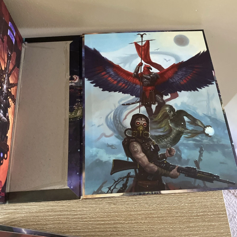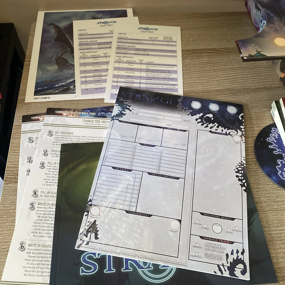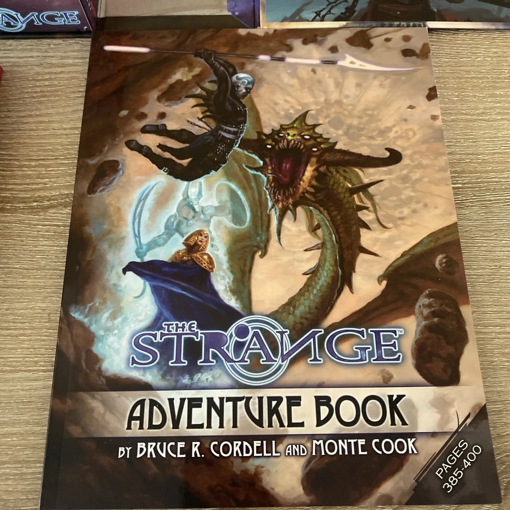 The Strange RPG is where stories, movies, myths, novels and even comics and games come alive in limited alternate dimensions called recursions. Player characters explore these excursions, accumulate treasures and wonders, and defend the Earth from entities they discover who are jealous of - or want to consume - the real world. Recursions float in a medium that scientists call dark energy, but that PCs call the Strange. The Strange was nominated for the Origins Award for Best New Roleplaying Game and received 2 ENnie awards, including awards for best setting, best game and best art. This box set has been opened and does have damage the seal came off but can be glued back and there is a tear on the bottom of the box (see pictures) but all items inside the box are new, all cards are still in original plastic packaging. Please see pictures for all items included in this exclusive box set.