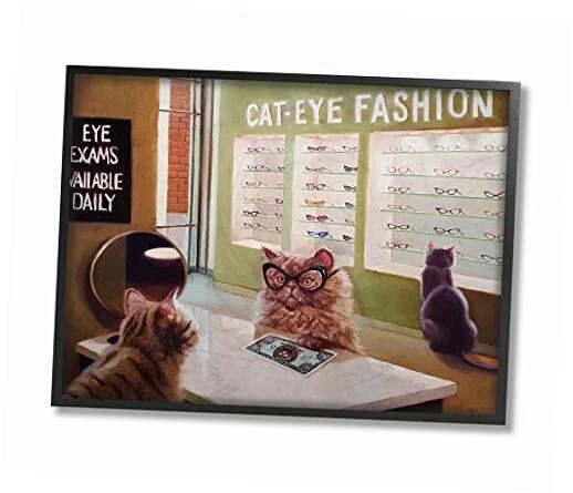 Menu 1. We require immediate payment. 2. We currently accept payment via eBay managed payments only. 3. Once payment is cleared, we will dispatch your shipment within 1-3 business days. Please refer to the "Shipping" tab for more information regarding shipping speed to your destination. The Stupell Home Décor Collection Persian Cat Eye Glasses Exam Funny Painting Framed Giclee Texturized Art, 16 x 20, Multi-Color Product description Dimensions: 16 x 1.5 x 20 Inch Frame Proudly Made in USA We start with a giclee lithograph mounted on wood, and finish it with a texturized brush stroke finish. We didn't stop t though as we fit it within a 1.5 inch thick ebony wood grain frame to add depth and diminsion. Ready to Hang - No Installation or Hardware Needed Design By Artist Lucia Heffernan PLEASE MESSAGE US IF YOU HAVE ANY OTHER QUESTIONS, AND MANY THANKS FOR READING ALL OF THIS. Copyright ©#. All Rights Reserved.