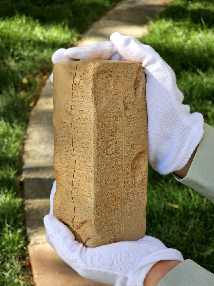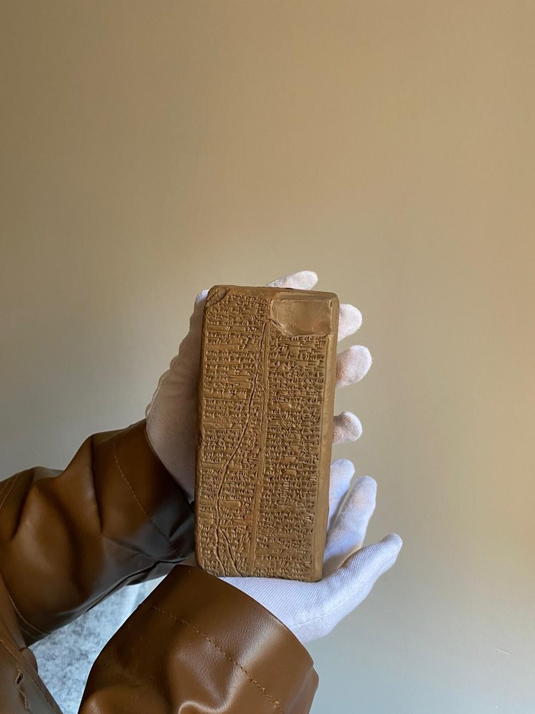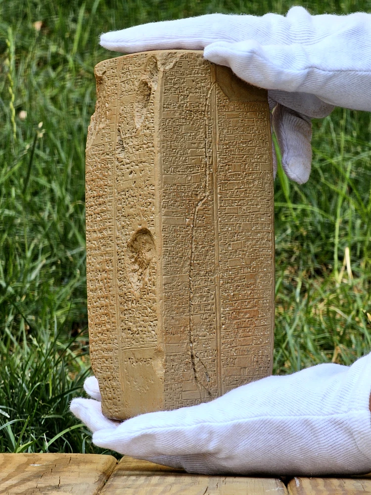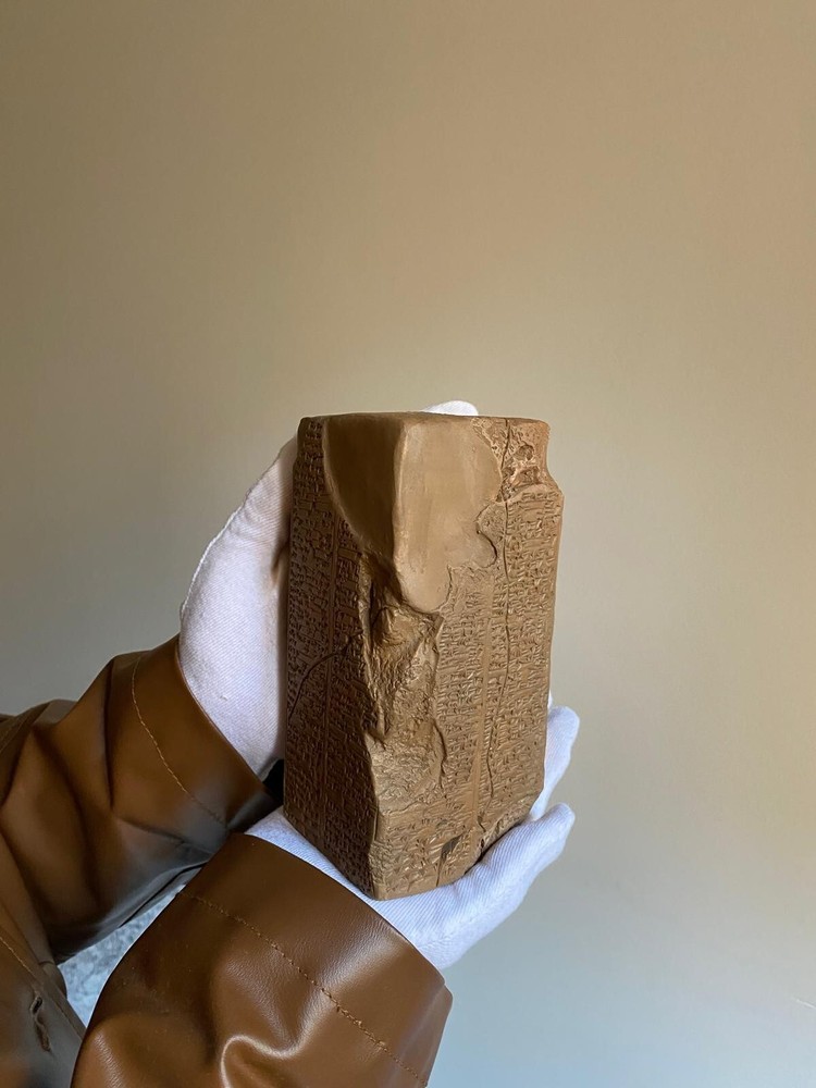 I create original replicas of ancient artifacts, particularly clay tablets, which are not museum photographs but crafted by me. When you place an order, it will be shipped to your address within approximately one week. Feel free to reach out for custom orders and projects. Thank you. One of the most intriguing artifacts from ancient Sumerian cities in Iraq is the Sumerian King List, a historical record of Sumerian kings. It blends mythical and historical rulers, dating back 4,000 years. Various versions of this list have been discovered, including the Weld-Blundell prism in the Ashmolean Museum, Oxford. This prism is the most extensive and complete version, tracing rulers from antediluvian dynasties to the Isin Dynasty. It provides valuable insights into the history of Sumer and parallels with Genesis. Sumer, the earliest known civilization, was located in southern Mesopotamia. It consisted of several city-states, each with its own deity and kingship institution. The Sumerian King List begins with the origin of kingship as a divine institution, featuring rulers with exceptionally long reigns. Some of these early rulers are mythical figures like Etana, Lugal-banda, and Gilgamesh, known for their heroic deeds. WHD: 7x7x18.5 CM. **Note:** Please be aware that the tablets we sell are replicas, and slight variations in lettering, as well as color tones, may exist due to the replication process. These differences contribute to the uniqueness of each replica, ensuring its distinction from the original artifacts. We strive to capture the essence of the ancient tablets while providing you with a faithful representation. Thank you for understanding!