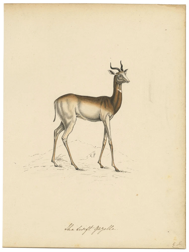 View All Subject Abstract Animals Architectural Botanical Cartoon Children Cityscape | Townscape Decorative Arts Fashion | Costume Floral | Gardens Food | Wine Genre Illustration Landscape Military Music | Instruments Mythical | Fantasy Life Drawing Political Portrait Religious | Inspirational Seascape | Marine Still Life Transport Medium Acrylic Aquatint Chalk Charcoal Engraving Etching Gouache Graphite Linocut Lithograph Mezzotint Mixed Media Oil Pastel Pen & Ink Pith Painting Watercolour Woodblock Woodcut | Wood Engraving The Swift Gazelle – Original mid-19th-century watercolour painting An original mid-19th-century watercolour painting, E.F., The Swift Gazelle. A delicate original zoological watercolour. Hand-drawn in pen and ink then coloured in watercolour. This painting is one of a collection that we have for sale by two Victorian hands, initialled A.F. and E.F, who were likely to be sisters. The majority of paintings in the collection are copies after botanical plates published at the time, principally from Joseph Paxton's 'Magazine of Botany', published in sixteen volumes from 1834 to 1849. Other examples are from Robert Thompson's 'The Gardener's Assistant' and Louis van Houtte's 'Flore des Serres'. Some are after the noted botanical illustrator Augusta Innes Withers. In pen and ink with watercolour. On card. Details Signed: Initialled lower right. Inscribed: Inscribed lower centre. Dated: -- Height (cm): 27.3 Width (cm): 20.5 Height (inches): 10.75 Width (inches): 8.07 Condition: Some age toning as shown, particularly around the periphery of the sheet. The picture may have other minor imperfections such as slight marks, foxing, creasing or pinholes, commensurate with age. Please see photos for detail. Presented: Unframed. Stock Number: JZ-682 All artworks come with a Certificate of Authenticity and—if it is a collection artwork—its accompanying collection text or artist biography. Contact What We Offer Our Listings About Us Delivery Returns Contact We welcome all enquiries. If you have a question about a specific artwork, it is helpful if you can please quote the 'stock number' listed towards the top of the product description (e.g. JG-347), in order to help identify the work. Please see our Business Seller Information below for contact details. Our gallery is exclusively online. Should you wish to view an artwork in person, please contact us to arrange an appointment (Monday to Friday, 9.30am–5.00pm). Please provide the 'stock number' (e.g. JG-347) of the artworks that you are interested in so that we can get them out of storage for you. As all artworks are kept in storage, please note that general browsing is not possible. The Somerset & Wood Guarantee It is our absolute priority that your buying experience at Somerset & Wood is of the highest quality. This extends from the accuracy of our listings and depth of research, to the diligence of our communication, and the care taken with our packing. We believe that these principles are as important for a low priced artwork as an expensive piece; we are committed to offering affordable art with high 'added value' and to keeping our prices as low as possible. Included with your order you will receive: Certificate of Authenticity (COA) Supplying a COA when selling an artwork is a long-established convention. It is all the more pertinent in today’s online marketplace, where as a buyer you commit to purchase without the opportunity to view and scrutinise the work. By providing a COA with every artwork, backed by our knowledge and expertise, we are vouching that a work is of the stated age and authorship. Accompanying Text for all Collection Works or Listed Artists A printed copy of the accompanying collection text is provided with all artworks that form part of a larger collection, or for listed artists an artist biography is included. This provides 'the story behind the artwork', which can be kept for future reference and enhances the value of an individual piece. Please note that on the rare occasions that an artwork is not part of a collection and has no known artist biography, no text will be included. Free Delivery Worldwide We are pleased to offer Free Delivery Worldwide on every order, regardless of value or destination. Quality Packaging We have the expertise in handling and packing required to ensure your artwork is received in the condition in which it left us. We use high quality envelopes, board, card, tubes and boxes, to give the best possible protection in transit. We believe that receiving a beautifully presented parcel in the post is still one of life’s small pleasures, and we take pride in delivering this experience for our customers. No Quibble Returns We understand that when buying online you do not have the opportunity to scrutinise an artwork in person. We therefore offer complete assurance that you can return the artwork if it does not meet with expectation for any reason. Colour We take care to ensure that our descriptions and images are as accurate as possible. It is important to us that the artwork you receive meets your expectations from viewing it on screen. We produce our digital images through a colour managed workflow and colour-check the images on a calibrated screen. Please note that colours can appear slightly different depending on the calibration of the screen on which they are viewed. If there is a significant variation in colour between our image and the actual artwork we will state this in the listing. If you have any questions about colour do contact us and we will be happy to help. Condition Depending on paper type, some degree of ageing is to be expected and is part of the authenticity of the work. We take care to describe the condition of artworks as fully as possible in our descriptions and photographs. We list any significant condition issues, such as losses, tears, foxing, stains and age toning. For more subtle marks, irregularities or variations in tone, please consult the pho