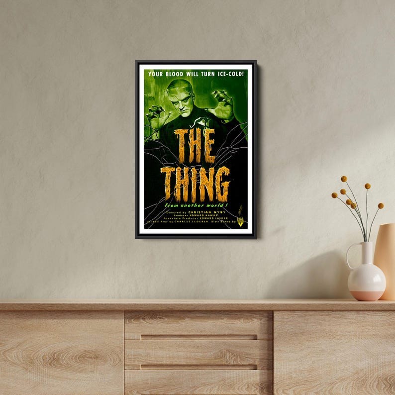 Subject: Movie Poster Brand: Unbranded Original/Reproduction: Reproduction Department: Kids, Teens, Adults Type: Poster Theme: Art, The Thing (1951) Size: Medium Room: Any Room, Bedroom, Cloakroom, Closet, Den, Dining Room, Greenhouse, Kitchen, Living Room, Office, Workshop Style: Vintage/Retro Features: Decorative Material: Paper Color: Multicolor MPN: none Country/Region of Manufacture: American Samoa