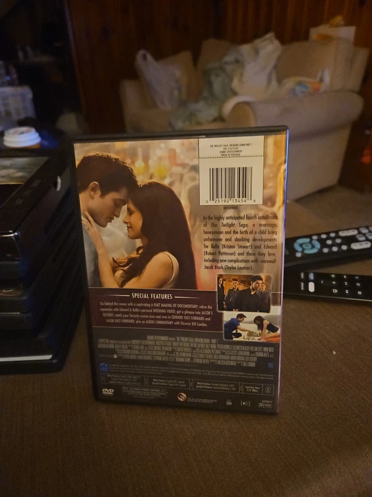 Language: English Release Year: 2011 Sub-Genre: Fantasy Format: DVD Brand: Unbranded Subtitle Language: English Producer: Karen Rosenfelt, Stephenie Meyer, Wyck Godfrey MPN: Does not apply Rating: PG-13 UPC: 0025192134548 Movie/TV Title: The Twilight Saga: Breaking Dawn, Part 1 gtin13: 0025192134548 Edition: Special Edition Director: Bill Condon Genre: Drama Studio: Summit Inc/Lionsgate