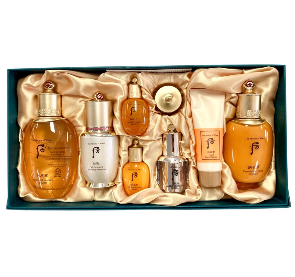 The Whoo Gongjinhyang InYang Essential Skin care 3pcs Set Skin Type : All Skin Types Made in Korea Contains : GongJinHyang Essential Moisturizing Balancer (Toner) 5.0 oz. / 150ml Balancer is an Oriental Herb Tonic that pro- vides softness and moistness by supplying water essence to dry skin. Balancer maintains clear and firm skin. GongJinHyang Essential Nourishing Emulsion 3.7 oz. / 110ml Emulsion provides gloss and life to skin by supplying sufficient nourishment and moisture. By penetrating deep into the skin, keeps your skin clean and healthy. Self-Generating Anti-Aging Concentrate 25ml Essential Moisturizing Balancer 20ml Essential Nourishing Emulsion 20ml Essential Moisturizing Cream 4ml Cleansing Form 40ml Regnerating Eye Serum 8ml GongJinHyang A secret royal court formula that presents heavenly skincare to empresses. GongJinHyang is whoo' basic care line that contains wild ginseng coroyceps sinensis and 'Gongjinbidan', a secret royal court heavenly beauty formula presented exclusively to the emperor and empress. Through the harmony between the yin-yang conformation princlple for the balance of the skin and the principle od increasing water and diminising fire for enhancing moisture within the skin while effectively soothing it. It gives the skin a new rediance and smoothness. About of WHOO The modern reinterpretation of the royal court secret, The History of Whoo. Traditional Korean royal culture is revived with modern science to create the most precious aesthetic beauty. Chinese character “后” written by a calligraphist means “the empress”. It also resembles the musical instrument “Fidel”. THE WHOO is premium royal court cosmetics for today’s empress with a modern reinterpretation of the royal court secrets. The harmony of modern science and the oriental herbal medicine that was used in the royal court only for the queen. ---------------------------------------------------------------------- * Shipping Your order will be dispatched within 2-3 working days of receiving payment (Monday-Friday). In the very unlikely event that your item is lost or damaged during post, then WE are responsible and will issue either a full refund or replacement. All products made in Korea will be shipped by Korea Post. Your address will not be changed after shipment and should be pay attention of correct address before placing order. Shipping period 1. Standard int'l Shipping ( Tracking No. available ) Delivery time 5-15 days : Asian countries ( Average : 5-10 days ) 7-25 days : U.S.A North America ( Average : 10 ~ 20 days ) 10-30 days : European and other countries ( Average : 15 ~ 30 days ) 2. Expedited int'l Shipping ( Tracking No. Available ) Delivery time 4-10 days : Most of all countries The duration does not include weekends and can be changed depending on other potential delays such as custom clearance. * Customs and Duties Import duties, Taxes, and hidden charges are not included in the item price or shipping cost. These charges are the buyer's responsibility. We are not responsibility of any tax to clear customs but will try to help ship U.S.A and European countries. * Return You can return your purchase for a refund or an exchange for any reason within 15 days after receipt of your shipment. Please note that the item must be returned in its original condition, not worn or not used. All return shipping charges must be paid for by the buyer. If the item you received was wrong or defective we will pay for shipping charges. Please contact us prior to shipping the item back. * Contact us If you have any questions or any special comments, please contact us via eBay messaging. We will do our best until you are satisfied. We truly appreciate your cooperation.