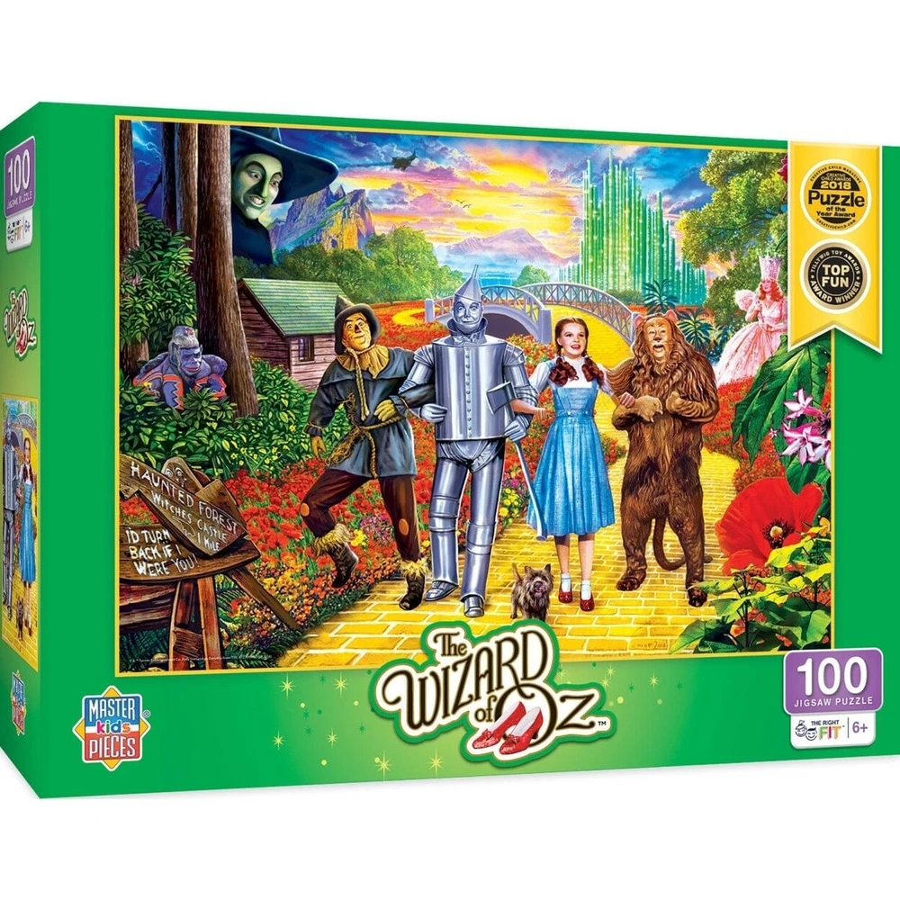 The Wizard of Oz puzzle features Dorothy, Toto, Scarecrow, Tin Man, and Cowardly Lion as they travel the Yellow Brick Road, just watch out for the Wicked Witch! This puzzle is 100 pieces and 19 inches x 14 inches in size. Look for The Right Fit puzzles collection and make sure your little one gets the correct piece count and size for a good challenge for their age. This puzzle is the right fit for ages 6+. The Wizard Of Oz 100 Piece Jigsaw Puzzle 19X14 Inches For Ages 6 And Up The Wizard of Oz puzzle features Dorothy, Toto, Scarecrow, Tin Man, and Cowardly Lion as they travel the Yellow Brick Road, just watch out for the Wicked Witch! This puzzle is 100 pieces and 19 inches x 14 inches in size. Look for The Right Fit puzzles collection and make sure your little one gets the correct piece count and size for a good challenge for their age. This puzzle is the right fit for ages 6+. Product Attributes: Weight (lbs.) : 1.00 lb UPC: 705988119361 Brand: MasterPieces