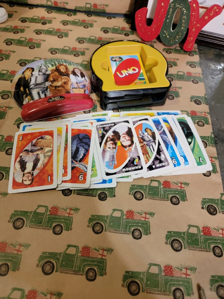 Experience the magic of The Wizard of Oz with this exciting Uno game from Mattel. Suitable for 2 to 10 players, this family game is perfect for both boys and girls aged 4 and up. The game includes cards featuring characters from the classic movie, such as Dorothy, Toto, and the Wizard himself. With a 2010 release year, this contemporary manufactured game is a must-have for any fan of the beloved film. Whether you're looking for a fun family activity or a way to relive the nostalgia of the original movie, this Uno game is sure to provide hours of entertainment.
