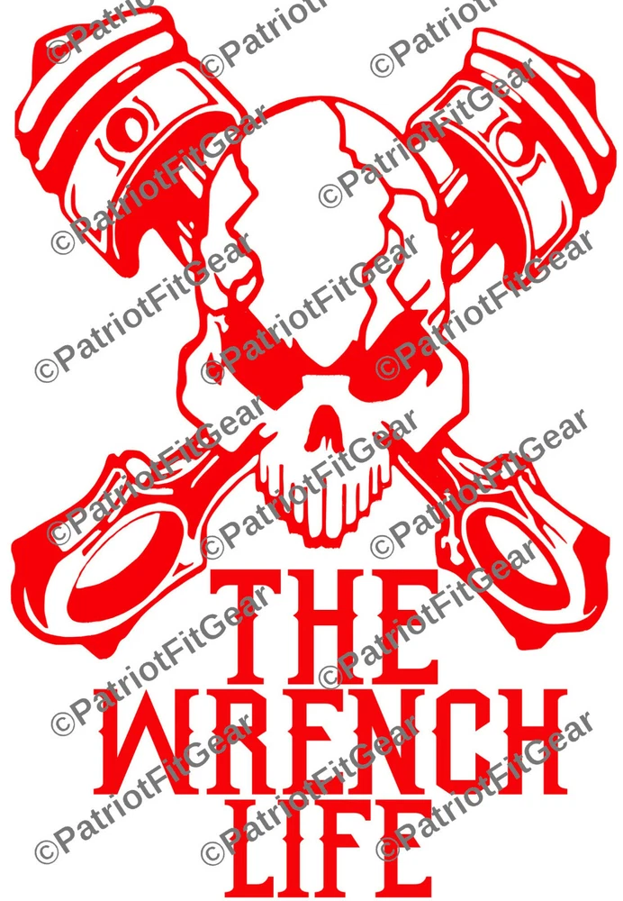 The Wrench Life,Mechanic,Gear Head,Wrenching,Skull,Pistons,Stickers,Vinyl Decal PatriotFitGear SIZE IS Approx.4.5"x6"and 9"x12" If you need a different size please ask. Decal is Vinyl Cut so it will be one single color. The vinyl is 3MIL, resistant to Sun, Rain, Snow & Sleet. The decal will stick to any hard, smooth surface and are suitable for wet locations (Boat, Car, Car Window, Laptop, Instrument Cases, Snowboard Decks, School Lockers, Mirrors, etc.) An application (transfer tape) overlay allows for precise and easy placement. All decals are computer cut and are customizable. HOW TO APPLY STEP 1: CLEAN THAT AREA GOOD! First make sure you have a dry place and no wind to install your decal. Make sure to prep the area, this is the most important part of installing a decal! If you put your decal or sticker on a dirty surface, it will just pick that dirt and grime up like a lint roller does your shirt, those aren't so sticky after you use them are they! So let’s make sure the area is nice and clean so that it can adhere to where you are going to place it. You can use soap and water, rubbing alcohol, or any other fast drying cleaner. My favorite is rubbing alcohol since it dries by itself within seconds and leaves no residue behind. On that note, do NOT use anything like Windex or other household spray cleaners that leave a residue behind or oily substance, that defeats the purpose and will cause your decal/sticker not to adhere to the best of it capabilities. STEP 2: DECIDE AND PEEL ! After you have cleaned your car, you now need to decide where you want to center your decal in the area you cleaned. I use a measuring tape to measure from different spots on the car to make sure I have it exactly where I want it and that it will not turn out crooked. When I measure I use a piece of masking tape to mark the measurements, normally four for left/right/top/bottom. Then I have a somewhat boxed area to force me to place the decal where it should go. Be aware after you stick it, you might cannot undo it and use it again, since it can separate the design or text from each other. After you decide where you want it, go ahead and start to peel your decal back, if it doesn't stick to the transfer tape the first pull, replace the transfer tape and push it together with your fingers or use a credit card to press together. STEP 3: PLACE THAT DECAL! So you cleaned your area and also decided how and where you are going to place your new decal or sticker and you made sure your decal can peel apart easily. FOR SMALLER DECALS - Now fully peel the decal off the backing and hold it on the tips of the masking/transfer tape. Try not to touch the back of the decal itself since it could leave dirt on your decals back side. You should have each hand holding the furthest corners from each other and keep it tight so that the decal does not fold in on itself. Place one end of the decal down and then smooth it out to the other end till the decal is fully placed. FOR BIGGER DECALS - Do not fully remove the backing on your decal. You will want to remove about 1/3 of the backing and start by applying that 1/3 of the decal to the car. Then slowly pull more of the backing off while at the same time apply the decal to the car until you have fully installed the decal. Either work left to right or right to left, which ever you feel best doing. Don't forget you can always buy a $1 spray bottle at your dollar store, put ONE small drop of soap in it and fill with water and shake. Then LIGHTLY (I MEAN LIGHTLY) spray the area and then apply the decal. This is only suggest for bigger decals or decals that you need to be in a precise area. STEP 3: THE HARDEST PART! Waiting... yes this is the hardest part, because most people are so impatient that they can't wait and they mess up the decal by removing the transfer tape too early! The best way to allow your decal to dry is out in the sun, having it in the shade or in a cool place will only make it take longer. If you used a mist of soapy water when installing your decal and do not let the sun dry it, then it will take a very long time before it adheres correctly, since nothing is there to remove the water and dry the decal to the surface. Do not try and rush this buy using a heat gun, you can melt the transfer tape and vinyl and when you peel it, it could cause the decal to stretch with the transfer tape. Again the best way is the sun. Finally just give the decal 30 minutes before you remove the transfer tape, go inside and eat lunch. By the time you’re done you should be able to go back outside and finish your decal and be in a good mood from that great lunch and nice cold sweet tea! If your decal is still not sticking, make sure you got it in the sun and it is warm outside, and just give it a bit longer. After ~30 minutes to dry, remove transfer paper.