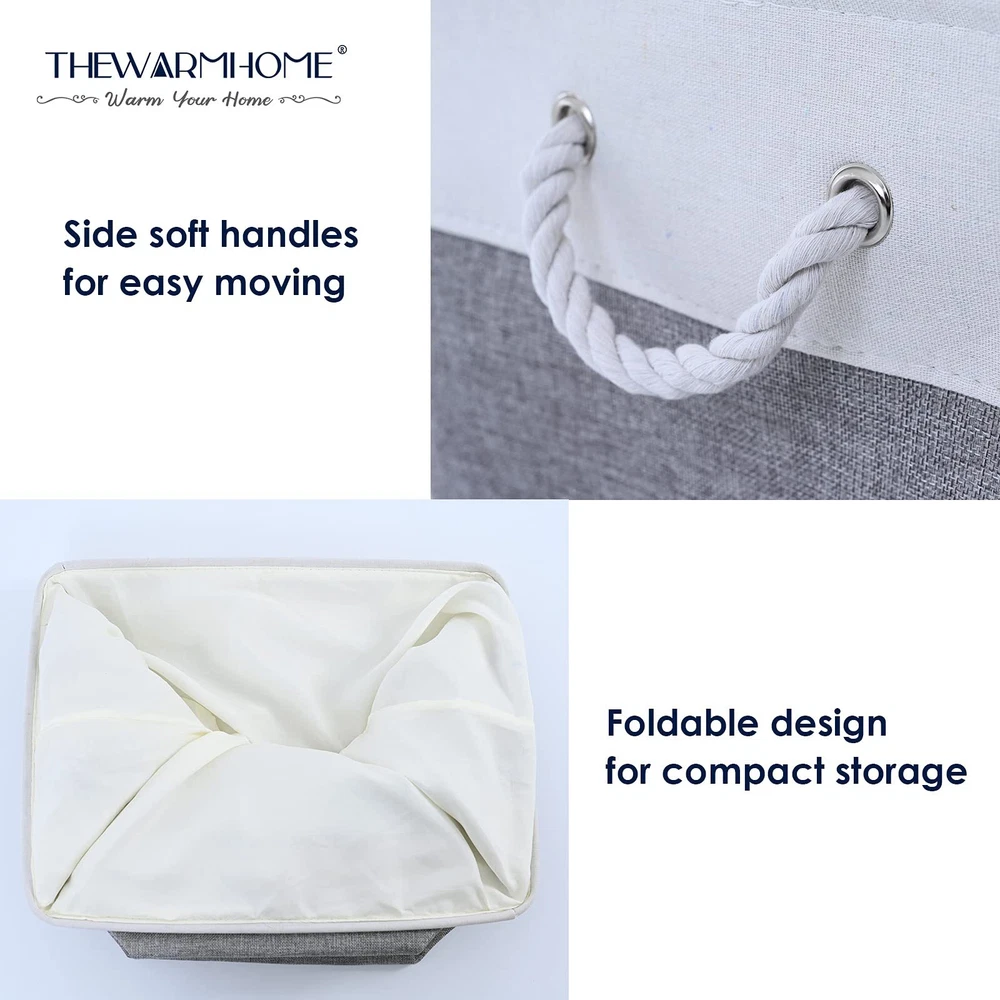 TheWarmHome Small Storage Baskets for Organizing,Storage Baskets for Shelves,Small Fabric Storage Bins W/Handles For Closet Nursery Toy Decorative Foldable (White&Grey, 11.8L*7.9W*5.2H-6 Pack) SMALL BASKETS SETS& PRACTICAL: 11.8”L x 7.9”W x 5.2”H, TheWarmHome storage bins provide a solution to most needs: organizing and storing baby products, clothes, shoes, kid’s toys, pet products, toiletry storage, laundry clothes, towel, blanket, bedsheet, sport gears, tissue,hats,scarves,socks,keys or other small items.can be used in bedroom, living room, study room,rest room,bathroom, kitchen, office, shelf, closets and cabinets.excellent choice for keeping your space nice, tidy and organized MINIMALIST DESIGN & ARTISTIC & DECORATIVE: TheWarmHome stackable storage bins had great storage capacity and stylish. Minimalist design and grey&white neutral color exterior fabric can be integrated into any home decorations and styles. White cotton rope handles on the sides add a nature touch. The decorative basket is like an art, not only provide a solution to many storage needs make home keep clean and tidy, doubles as a charming decoration embellish your room . TheWarmHome, WARM YOUR HOME HANDMADE STICHED & STURDY: This fabric storage basket outside fabric is made of linen &thicken Environmental EVA,and used a lining material for the inside. Semi handmade stitched. Sturdy metal rod frame around the top keep the basket shape. Strong seams and rope side handles, make this organizer bins are sturdy and easy to grab. Stand up great on their own even unfilled and ensure a greater product lifespan PERFECT BASKET FOR GIFTS IDEAS - As a must have for home organization and storage, TheWarmHome organizer bins is the perfect gift basket for your lover. Contrast plastic woven wicker or more material, Fabric material softer and Foldable, easy storage and clean, more suitable use in home. 10 years + professional factory, Use better EVA fabric materials, Produce more sturdy products, the best choice of Christmas/ Newborn /Birthday/ Wedding gift for kids /wife /mother /husband /friends CARE TIP - Collapsible design for space saving, before use to get the wrinkles out the fabric storage bin: either stuff the fabric storage bins with blankets and pillows for a few days and the baskets will take the shape , or steam iron them at low-heat setting; dusting the basket with a soft dry cloth is recommended. Spot clean with light soapy water when needed. Not recommended to machine wash for there are metal frame. Shipping We offer FREE shipping on all orders! We use a selection of shipping services such as UPS, FedEx, USPS etc. We only ship to the lower 48 states, no APO/FPO addresses or PO Boxes allowed. Local pickups and combined shipping options are not provided at this time. Return You can return a product for up to 30 days from the date you purchased it. Any product you return must be in the same condition you received it and in the original packaging. Please keep the receipt. Payment We accept payment by any of the following methods: PayPal Please pay as soon as possible after winning an auction, as that will allow us to post your item to you sooner! Feedback Customer satisfaction is very important to us. If you have any problem with your order, please contact us and we will do our best to make you satisfied. Contact Us If you have any queries, please contact us via ebay. We usually respond within 24 hours on weekdays. Please visit our eBay store to check out other items for sale! Thank you for shopping at our store.