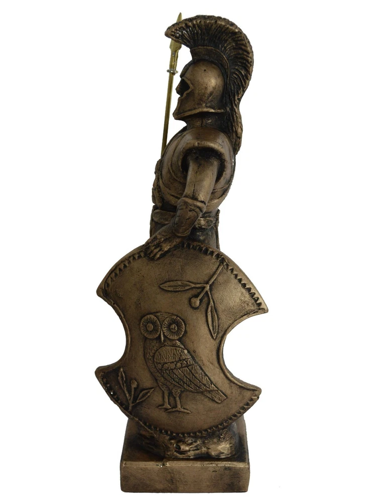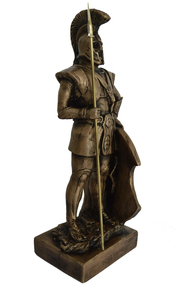 THEMISTOCLES STATUE Themistocles was an Athenian politician and general. He was one of a new breed of non-aristocratic politicians who rose to prominence in the early years of the Athenian democracy. As a politician, Themistocles was a populist, having the support of lower class Athenians, and generally being at odds with the Athenian nobility. Elected archon in 493 BC, he convinced the polis to increase the naval power of Athens, a recurring theme in his political career. During the first Persian invasion of Greece, he fought at the Battle of Marathon, and was one of the 10 Athenian strategoi (generals) in that battle. In the years after Marathon, and in the run up to the second Persian invasion he became the most prominent politician in Athens. He continued to advocate a strong Athenian navy, and in 483 BC he persuaded the Athenians to build a fleet of 200 triremes; these would prove crucial in the forthcoming conflict with Persia. During the second invasion, he was in effective command of the Greek allied navy at the battles of Artemisium and Salamis. Due to subterfuge on the part of Themistocles, the Allies lured the Persian fleet into the Straits of Salamis, and the decisive Greek victory there was the turning point in the invasion, which ended the following year by the defeat of the Persians at the land Battle of Plataea. Please be aware that, due to the fact that our products are either individually cast, carved, hand painted and hand finished, there will inevitably be minor variations in size, colour and texture.(B306 ) Details: Condition: New, Handmade in Greece Height: 29 cm(11.4") Width: 10 cm(3.9") Weight: 1 Kg Material: Casting stone with Bronze effect ********