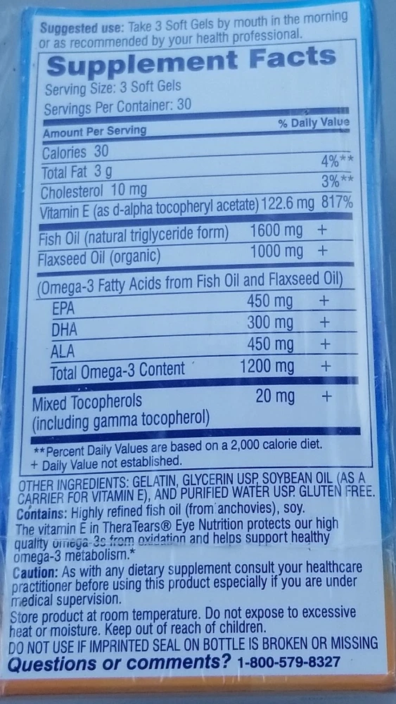 3 Thera Tears EYE NUTRITION 1200mg Omega-3 Healthy Tears 90 softgels 02/2025.