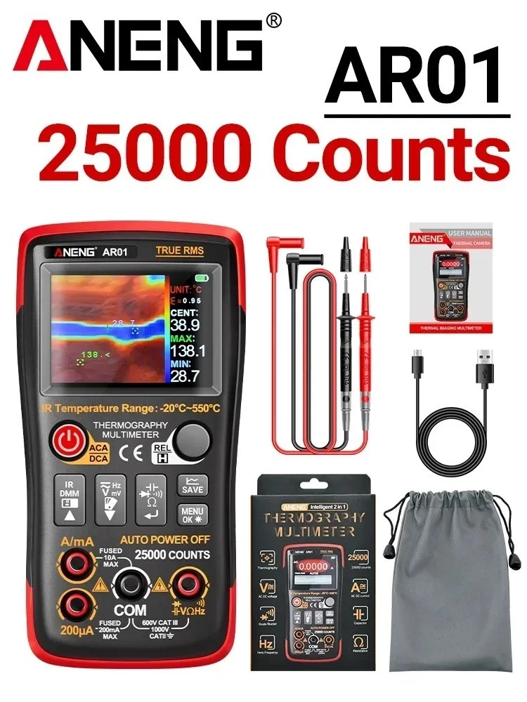 If available stock is too low, please advise the desired quantity. Product Highlights Swipe, compare and decide with confidence. 1 Overview 2 Gallery 3 Details & Specs 4 Support & FAQ Image gallery Tap thumbnails or arrows to switch the view. ‹ › ‹ › ‹ › ‹ › 1 / 4 2 / 4 3 / 4 4 / 4 Key benefits Why this product stands out Core features in a compact overview – ideal for quick comparison on eBay. 2-in-1 function Thermal imaging combined with electrical testing in one handheld tool, covering AC/DC voltage and current, with diode test. High resolution readings 25,000 counts with Auto Range and data hold for precise, repeatable measurements. Ready for work Battery included with USB charging; automatic shutdown and low-power warning; includes probes, lanyard, user manual, carrying case. At a glance Quick summary Clear & concise Use this thermal imaging multimeter for faster troubleshooting: it blends infrared heat sensing with precise electrical testing in one handheld tool. It measures AC voltage 0-750 V and DC voltage 0-1000 V, AC current 0-10 A and DC current 0-10 A, with a 25,000-count digital display for stable, repeatable readings. Auto Range simplifies use, while data hold keeps results on screen as you work. The unit runs on a 3.6–4.2 V, 2000 mAh battery with USB charging and includes probes, lanyard, user manual and carrying case; automatic shutdown and a low-power warning help conserve energy. Designed for DIY electrical tasks in environments from 0 to 40 °C, it supports a frequency range up to 99.99 kHz and includes diode testing. The bilingual UI (Chinese/English) supports diverse users. This 2-in-1 tester provides both thermal imaging and electrical measurements in one compact device, making it suitable for home repairs, electrical troubleshooting and small shop jobs. Details & Specs Technical Specifications Mobile-friendly Mobile: stacked view. Desktop: table view. Display 2.4 inch TFT color display Counts 25,000 counts DC Voltage 0-1000.0 V AC Voltage 0-750.0 V DC Current 0-10.000 A AC Current 0-10.000 A Diode test Yes IR Temperature Range -20°C to 550°C True RMS Yes Data storage Image data storage Power supply 3.6V–4.2V, 2000 mAh Battery Included Yes Auto range Yes Automatic shutdown Yes Low power warning Yes Operating Temperature 0-40°C Language Chinese/English USB charging Yes Display 2.4 inch TFT color display Counts 25,000 counts DC Voltage 0-1000.0 V AC Voltage 0-750.0 V DC Current 0-10.000 A AC Current 0-10.000 A Diode test Yes IR Temperature Range -20°C to 550°C True RMS Yes Data storage Image data storage Power supply 3.6V–4.2V, 2000 mAh Battery Included Yes Auto range Yes Automatic shutdown Yes Low power warning Yes Operating Temperature 0-40°C Language Chinese/English USB charging Yes Service & help Our promise, support & FAQs What’s included, service promise and answers to common questions. Included Scope of delivery – what is in the box Probes Lanyard User manual Carrying case Our Service Promise Shipping, delivery window & tracking Transparent fulfillment: We are your contractual seller on eBay. Many items are fulfilled through third-party partners. Dispatch origin can be China (most orders) or the United States (some orders). Handling time: Orders are typically processed within the handling time shown on eBay (commonly 3–4 business days), before they enter transit. Carrier/service may vary: The shipping service or carrier shown on eBay can differ from the actual carrier used. Shipments may involve multiple carriers (international line-haul and a different U.S. last-mile carrier). Delivery estimate: The delivery date shown by eBay is an estimate and can be affected by carrier operations, routing changes, peak season, weather, and customs/processing delays. We generally select suppliers targeting about 15 days or less, but delays may still occur. Tracking: Tracking is not uploaded for most orders. Only when it is needed to prove that it got delivered. Support & issue resolution: We aim to assist via eBay messages, but replies are not guaranteed and may be delayed. If there is any problem (not received, damaged, defective, or not as described), please use eBay’s official request/case flow (e.g., “Item not received” or a return request) so the issue is documented and handled under eBay policy. Frequently Asked Questions (FAQ) Answers to common buyer questions What can this tool measure and test, and what ranges does it support? It combines a thermal imaging tool with a digital tester. It measures DC voltage (0–1000.0 V), AC voltage (0–750.0 V), DC current (0–10.000 A), AC current (0–10.000 A), performs a diode test, and captures infrared temperature from −20°C to 550°C. It uses True RMS and has a 25,000-count display. What features help with everyday use and reliability? Auto range for quick measurements, automatic shutdown to save power, low power warning, a 2.4-inch color display, and a rechargeable battery (3.6–4.2 V, 2000 mAh) with USB charging. It also stores image data. How is data stored and accessed? Image data and test results are stored in internal memory and can be viewed on the built-in 2.4-inch display. The device provides a USB charging port for power when needed. What are the operating conditions and language options? Operating range is 0–40°C. Language options include English and Chinese. Structured product overview Designed for mobile & desktop Helpful support section © 2026 WARENGUT. All rights reserved. Item number: 7256808868614633