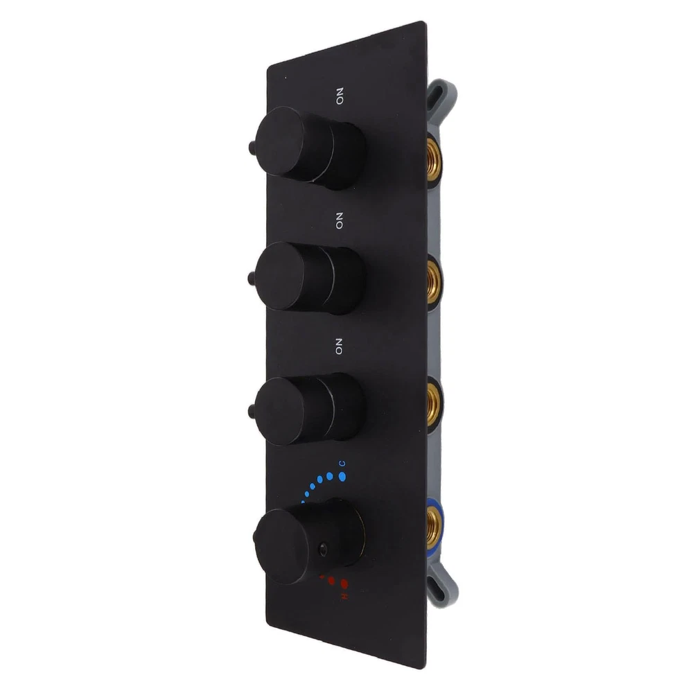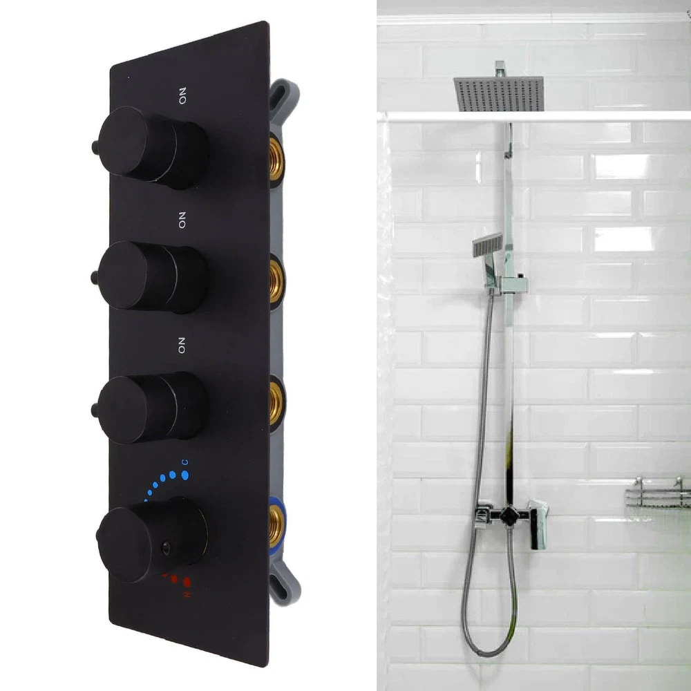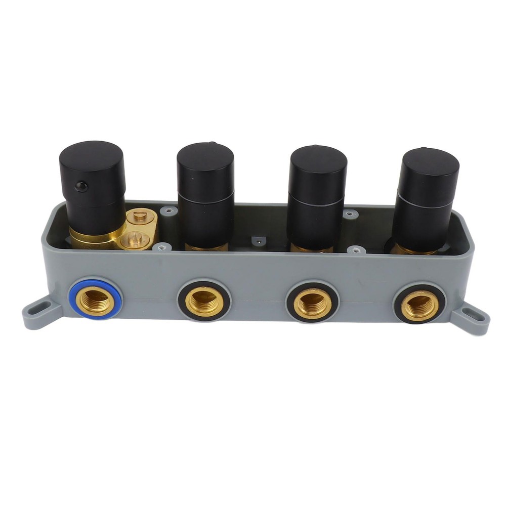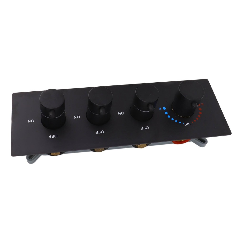 Featrues: 1、Accurate Temperature Control: This shower diverter has accurate temperature control, which can prevent you from scalding when you son ah shower. 2、3 Outlet Design: This rain diverter features a 3 outlet design with a 3/4 inch hot and cold water inlet and three 1/2 inch outlets. 3、Knob Switches: This shower diverter features a knob switch that works independently. You can choose to use one or more items at a to enjoy a full body shower from all angles and enjoy an energizing bath. 4、Excellent Brass Material: This rain diverter is made of excellent brass material, which is sturdy and wear resistant, not easy to erode, and has a service life. 5、Black Matte Finish: This shower diverter features a black matte finish for a simple and elegant appearance that will look great installed in your bathroom. Specification: Item Type: Shower Diverter Material: Brass Inlet Connection Size: Approx. 0.75in/1.9cm Inlet Connection Type: 3/4 Inch NPT Female Thread Outlet Connection Type: NPT Thread Ports Number: 3 Outlet Connection Size: Approx. 0.5 inch/1.27cm Package_list: 1 x Diverter 1 x Panel 1 x Adjustment 1 x Seal 3 x Accessory 1 Bag x Fittings 1 x Hex Wrench