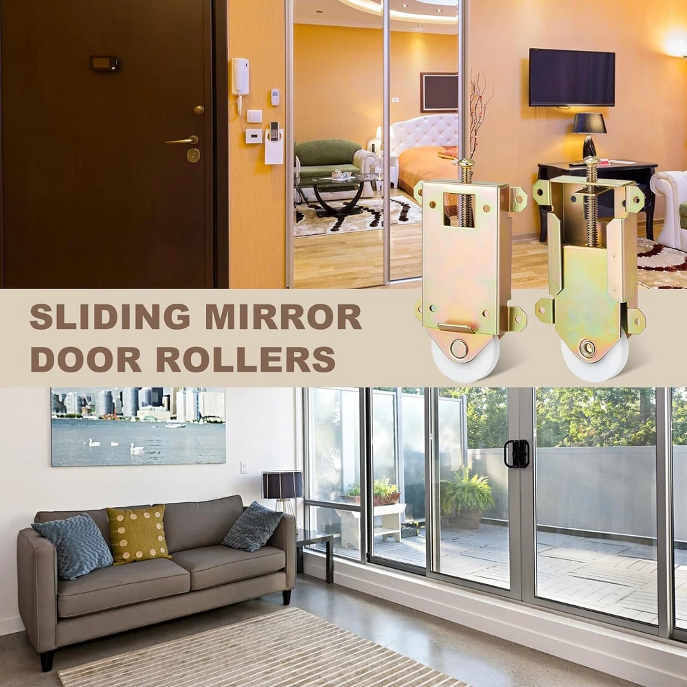 Store New Arrivals Add to Favorite View Feedback Therwen 4 Pcs Sliding Mirror Closet Door Roller Wheels Replacement Assembly 1-1/2 Inch Nylon Concaved Ball Bearing Wheels, 2-1/2 Inch Hole Centers Sliding Glass Screen Door Hardware Fits Description Item model number GFA-Therwen-1119 Part Number GFA-Therwen-1119 Style Modern Unit Count 4.0 Count Mounting Type Stem Mount Item Package Quantity 4 Color as shown in the pictures Brand Therwen Material Nylon, Plastic, Metal, Steel Country of Origin China Batteries Required? No Package Dimensions 5.94 x 4.06 x 2.44 inches Item Weight 1.32 pounds Wheel Width 2 Inches Caster Type Ball Surface Recommendation Multi-Surface Special Features Shock Resistant Manufacturer Therwen Size Name 2-1/2 Inch Size 2-1/2 Inch What You Get: the package includes 4 pieces of sliding glass door rollers, excluding bolts, enough to meet your daily needs, or you can keep them for spare or share them with your friends and family Size Information: the steel shell of closet sliding door hardware has a 2-1/2 inch mounting hole center, its main body width is 1-7/8 inches, the diameter of ball bearing is 1-1/2 inches, and the single plug in metal bracket is 1-5/8 inches wide and 1/2 inch thick; Please refer to the size drawing for details, and determine the size before purchasing Quality Material: the sliding glass door wheels are made of stamped steel and galvanized with yellow zinc; The wheel is made of durable plastic, which can provide smooth, lasting and quiet rolling with narrow concave edges Easy to Replace: our sliding door rollers replacement is installed at the bottom of the sliding mirror wardrobe door, and the central screw is applied to adjust the height of the door after installation; The top adjusting screw can be quickly adjusted with a crosshead screwdriver, and the loosening can be easily stopped with a fixing nut; The slotted metal bracket can be separated from the shell separately Widely Applied: if your sliding wardrobe door starts to get stuck or keeps jumping out of the track, it's time to replace our sliding door wheels, suitable to replace wooden rollers or metal sliding mirror doors and other contractors' mirror doors Features: Smooth operation: The sliding closet door wheels provide smooth and silent operation, which improves the opening and closing experience of the mirror door. Durable and wear resistant: The garage door rollers are durable, sturdy and solid, and can withstand the wear and tear of daily use and serve you for a long time. Specifications: Material: stamped steel and galvanized with yellow zinc Color: as shown in the pictures Size: as shown in the pictures Package includes: 4 x Mirror door roller assembly Notes: Manual measurement, please allow slight errors on size. The color may exist a slight difference due to different screen displays. ABOUT US We offer the best prices around on high quality products. Our E-store includes media such as books, movies, music and games while offering electronics, toys, sporting apparel, clothing, tools, general home, garden items and more. SHIPPING We are always working hard to ensure your package arrives as soon as possible. Please understand that some factors like weather, high postal traffic, and the performance of shipping companies are outside of our control. We offer free shipping to the lower 48 states and ship within 2 business days of payment, usually sooner. We do not accept P.O. Boxes. Please provide a physical address. RETURNS We offer a 30-Day Return Policy on items which you are not completely satisfied with. You have the option for a full-refund or an exchange of the item. No returns are available on items shipped outside of the USA. PAYMENT We accept PayPal. CONTACT US This page content is yet to come Please ad us to your favorite seller and visit again later Thank You