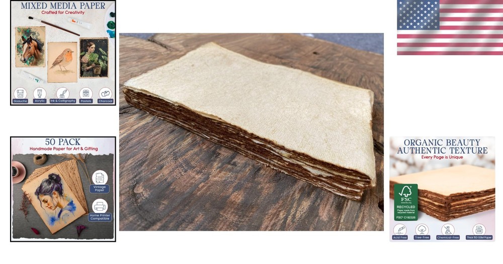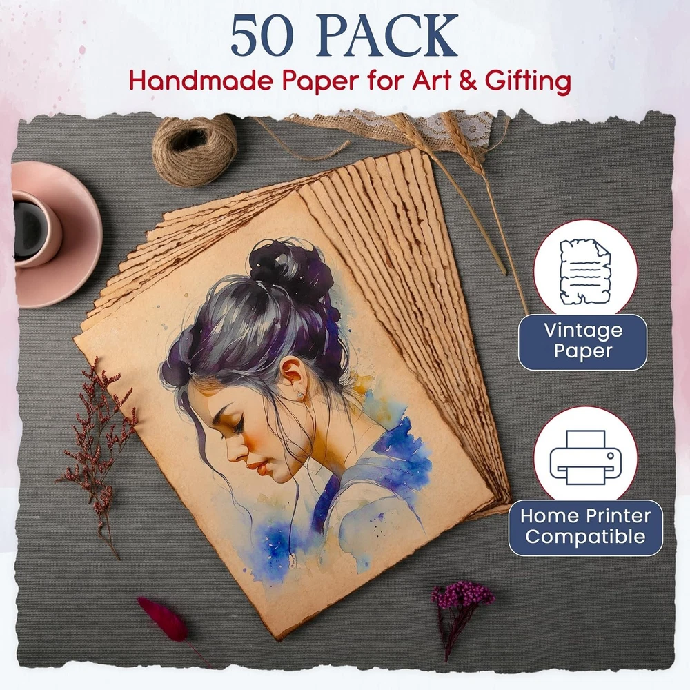 Thick Antique Deckled Edge Blank Paper - Perfect for Sketching & Journaling ‹ › ‹ › ‹ › ‹ › ‹ › ‹ › ‹ › ‹ › ‹ › ‹ › ‹ › Thick Antique Deckled Edge Blank Paper Perfect for Sketching & Journaling Features: VINTAGE 100% cotton paper sheets, rooted in the artisanal traditions of 14th century India. Each sheet is HANDMADE and dried in the sun, presenting a TIMELESS, creative alternative to conventional paper. Blank RECYCLED cotton that is acid-free, chemical-free, and tree-free. Beautifully HAND-MADE antiqued deckled edges prevent bleed-through and provide an exquisite touch. Environmentally conscious and versatile, it is watercolor and fountain pen friendly. Benefits: Ideal for writing, drawing, sketching, and painting. Supports a variety of media including watercolors, ink, paint, and pencil. Perfect for crafts, doodling, letters, invitations, and maps of hidden treasures. Includes 50 A4 size sheets (21 x 30cm, 8.25 x 11.7") of archival quality for long-term preservation. User-friendly, it prints well on home inkjet printers—just use one sheet at a time. Why choose our Thick Antique Deckled Edge Paper? Unleash your creativity with our Thick Antique Deckled Edge Blank Paper, steeped in history and crafted with love. This exquisite paper not only offers a tactile experience unlike any other, but its environmentally-friendly composition ensures you can create guilt-free. Whether you are journaling, sketching, or crafting, enjoy the smooth texture that supports various media, making every stroke a masterpiece. Transform your creative visions into reality—order your set of Thick Antique Deckled Edge Paper today! Shipping Free & Fast Shipping - We offer free shipping to most of the USA with a normal delivery time of 3-7 days. However, due to the current situation, additional delivery time (up to 3 weeks) may be required for some items. Alternative Carriers - We may use alternative carriers (e.g. USPS, FedEx, UPS, etc.) to ensure your package arrives safely and on time. Due to the use of multiple carriers, we are unable to provide a tracking number automatically. Handling Time - Orders are processed and shipped within 1-2 business days of receiving cleared payment. Shipping Restrictions - Shipping to Alaska, Hawaii, Puerto Rico, Guam, and other US territories may incur shipping charges or delivery restrictions. Please contact us before ordering, or your order can be refunded/cancelled. State Restrictions - There may be restrictions based on your state of purchase. For example, certain items may not be shipped to California due to state regulations. Contact for Tracking Updates - If you require tracking updates or have any concerns about the delivery of your order, please feel free to contact us, and we will be happy to assist you. Return 30-Day Hassle-Free Returns - We want you to be completely satisfied with your purchase. If you are not, you can return the item within 30 days of receiving it for a full refund or exchange. Easy Return Process - To start a return, simply contact us and we will provide you with a prepaid return shipping label and detailed instructions. Restocking Fee - There are no restocking fees for returns. However, the buyer is responsible for return shipping costs if the return is not due to a seller's error. Refund Processing Time - Refunds will be processed within 5 business days of receiving the returned item in its condition. Payment We accept all major credit cards, PayPal, and Apple Pay for your convenience. Your payment information is secure and encrypted to ensure a safe and seamless transaction. Please complete your payment within 3 days of purchase to avoid any delays in shipping. Feedback Your feedback is extremely important to us. We strive to provide the best products and customer service possible. If you are satisfied with your purchase, please take a moment to leave us a positive review. If you have any concerns or issues with your order, please contact us before leaving negative feedback. We are committed to resolving any problems and ensuring your satisfaction. Contact Us If you have any questions or concerns, please feel free to out to our customer support team. You can contact us through the eBay messaging system. We are available Monday to Friday, 9:00 am to 5:00 pm EST, and we will do our best to respond to your inquiry within 24 hours. Buy it now and enjoy a pleasant shopping experience! Unit Quantity: 50.0 count Features: Handmade,Antique,Deckle Edge,Recycled,Watercolor Friendly,Mixed Media,Loose Leaf,Thick 150 GSM,Acid-Free,Chemical-Free,Tree-Free,Prevents Bleed-Through Type: Blank Card Occasion: All Occasions Recipient: Multipurpose Color: Vintage Deckle Paper Style: Vintage Card Type: Flat Card Origin: India Item Height: 0.1 Inches