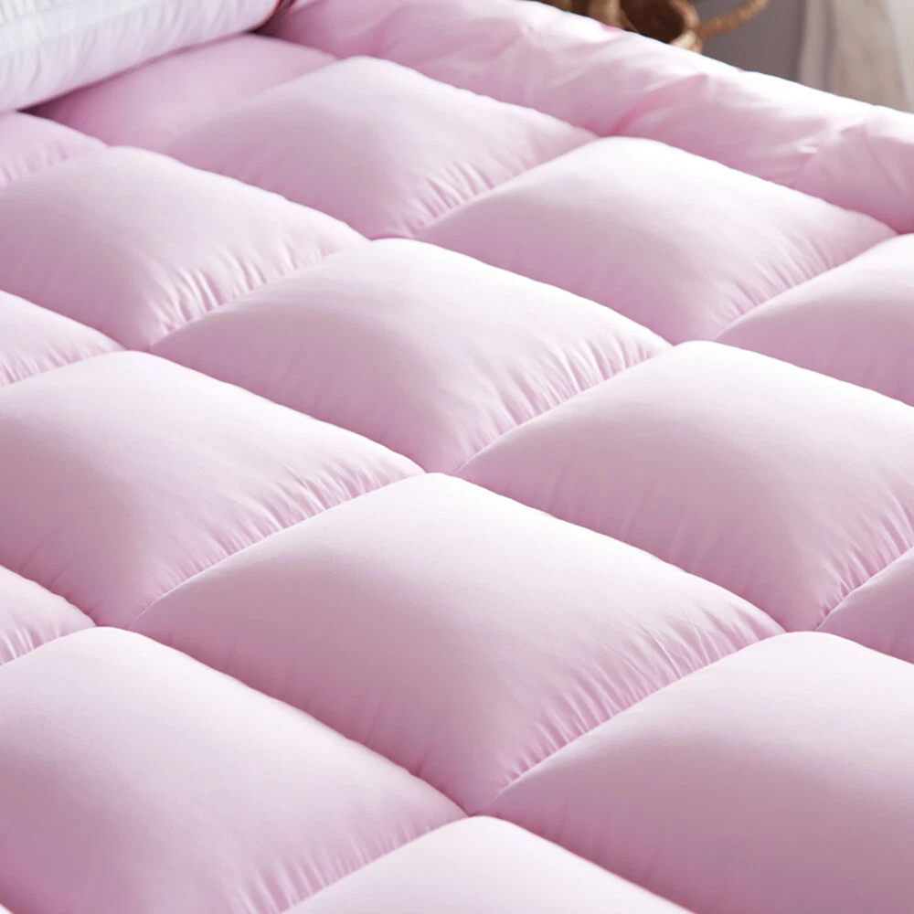 Thick Mattress Pad Quilted Cooling Mattress Topper Cover Breathable Filled Soft Feature: 【EXTRA THICK & LUXURY COMFORT】 Drift into a sounder, deeper sleep on this overfilled pillow top mattress topper. Filled with supportive 72D hollow fiber alternative fill, it distributes weight evenly and alleviate pressure points, allows you sleep soundly and wake up without back pain. Ideal for side, back or stomach sleepers. 【Ergonomic Design】 Unique ergonomic design, scientifically improve human sleep, the thickness of the mattress is 10cm to reach the human body comfort value, the force is uniform, and the support is good. You will not feel rigid during sleep, ensuring your sleep quality. 【COOL & BREATHABLE】 The mattress cover is made from polyester fiber combed top surface features good ventilation and distributes heat to help regulate temperature. It will wick away sweat and keep you cool and dry. Reduce hot feeling caused by memory foam mattress or foam mattress topper. 【Perfectly Fits Mattress】 4 power band elastic ensures a secure fit and grip on the mattresses.The elastic fabric band will fit up perfectly to our mattress. 【Machine Washable & Easy Care】 Be it sweat or stains, you will never get them out of memory foam topper or expensive mattress. This mattress topper will take care of them all. If it gets dirty, just throw it into a commercial washing machine, it will come out fluffy and clean after washing and drying. Specification: Cover Material: polyester fiber Filling Material: 72D hollow fiber Color: White, Gray,Pink, Coffee,Triangles Dimensions : Size Length Width Height Twin 74.8" 39" 3.9" Full 74.8" 54" 3.9" Queen 80" 60" 3.9" King 80" 78" 3.9" Package included : 1 X Mattress Pad (Pillow is not included) On Apr 24, 2023 at 08:43:10 PDT, seller added the following information: