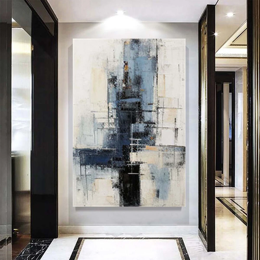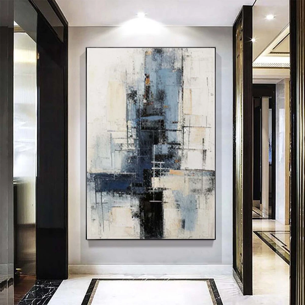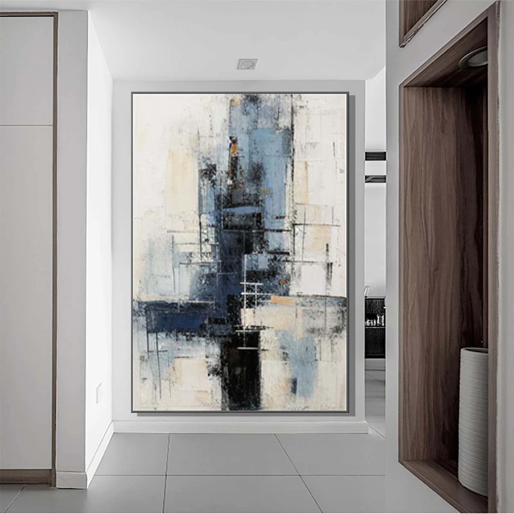 Thick Oil Knife Abstract Blue Oil Painting On Canvas Hand Painted Modern Wall