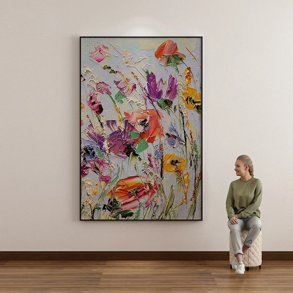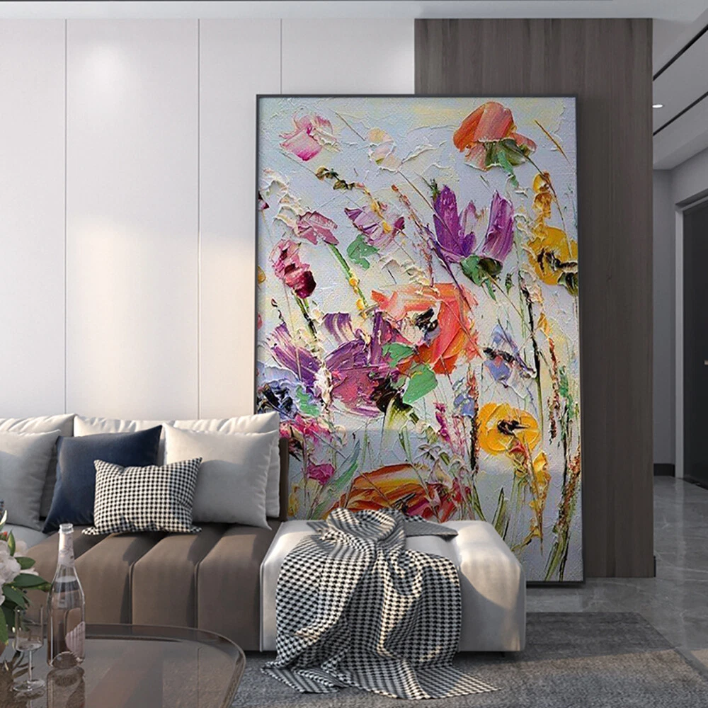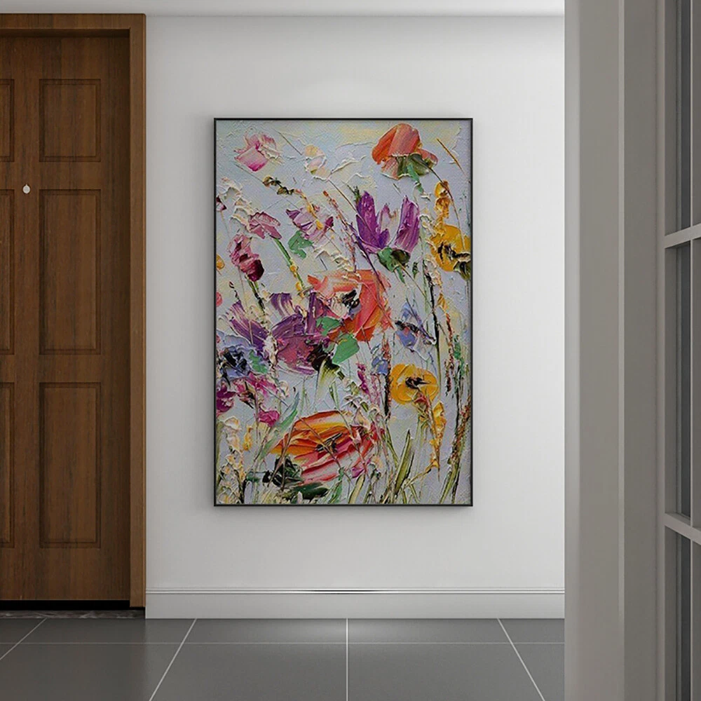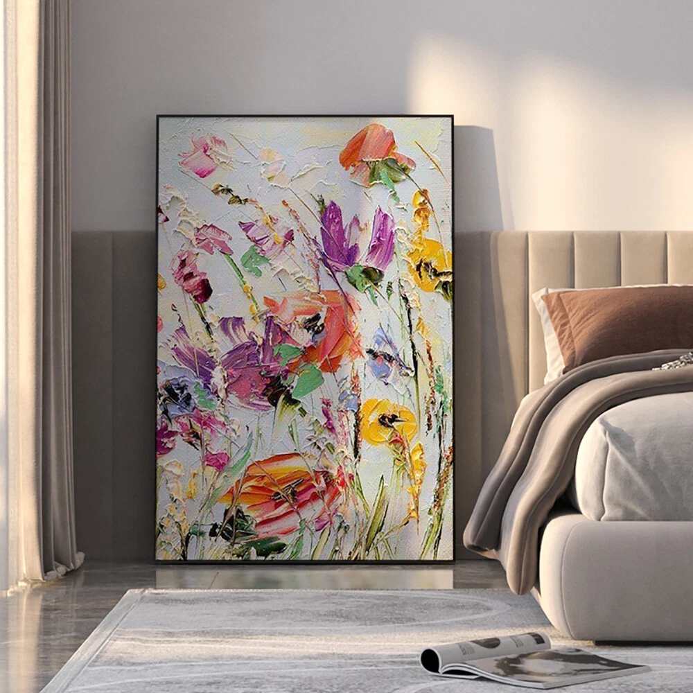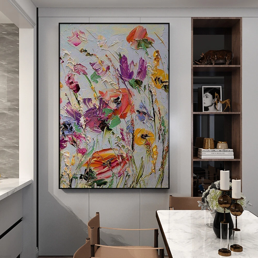 Thick Oil Knife Flower Abstract Oil Painting On Canvas Hand Painted Modern Wall