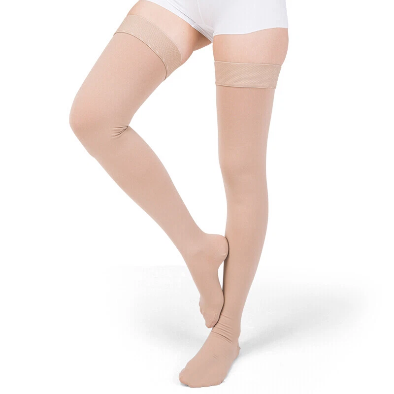 Store Categories Store Categories Other Thigh High 30-40 mmHg Compression Stockings Medical Varicose Vein Relief Edema Product Description 30-40 mmHg Compression This stocking provides 30-40 mmHg of gradient compression and should be worn under a doctor’s supervision. This level helps relieve severe varicosities, severe edema (swelling), and chronic venous insufficiency. It helps during healing after surgical and sclerotherapy procedures and helps prevent venous ulcerations. This level also helps relieve superficial thrombophlebitis. 30-40 mmHg Very Firm Gradient Compression Indication Guide: ▸ Moderate varicose veins with mild to moderate swelling (also during pregnancy) ▸ Post-procedure of larger veins to maintain treatment success ▸ Prevention, management and treatment of DVT or Post-Thrombotic Syndrome ▸ Superficial phlebitis ▸ Mild lymphedema after decongestant therapy to maintain reduction ▸ Orthostatic/postural hypotension ▸ Post-fracture, post-traumatic edema Feature: Brand: VARCOH ® Series: Medical Gender: Unisex | Women | Men Compression Level: 30-40 mmHg Fabric: 70% Nylon, 30% Spandex Colors: Beige, Black Sizes: S – 4XL Age group: Adult Package Includes: 1 Pair Suitable for sports, training, travel, fitness, office personnel, aircraft passengers, rehabilitation. All in all, a veritable necessity for anyone working long hours standing on their feet, or those heavily invested in athletics and a fitness lifestyle. Great gift for your loved one or friend. 100% money-back guarantee. Finest product and service guarantee. Your satisfaction and health is our goal. Enjoy your shopping. Shipping Size Chart Return / Exchange Washing FAQ Shipping Free Shipping and Fast Delivery - VARCOH ® We offer free standard shipping on all orders within the U.S., including Puerto Rico, other US Territories. ( No minimum order is required! ) FREE 📦 Continental U.S. 3-10 Business Days By default, your order will be shipped by USPS Standard Shipping ( USPS First Class ® ). FREE ✈️ PR, Territories & APOs 7-15 Business Days For orders to Puerto Rico , other US Territories , and Military APOs , please allow extra time to receive your order. Please note that we ship from Monday to Friday Shipping Information We have 3 warehouses in the U.S.: Rowland Hghts, CA 91748 Houston, TX 77090 Hebron, KY 41048 Your package will be shipped from the warehouse closest to your order address . If the nearest warehouse is out of stock, it will be shipped from one of the other 2 warehouses. Items are generally dispatched within 1 business day after payment is cleared. Please contact us via eBay message if you do not receive them within 14 business days . Size Chart Compression Size Chart and Measuring - VARCOH ® Area S M L XL XXL 3XL cG ( Thigh ) Max Cir. inch: 19" - 23" cm: 48 - 58 inch: 20" - 24.5" cm: 51 - 62 inch: 22" - 26" cm: 56 - 66 inch: 24" - 27.5" cm: 61 - 70 inch: 25.5" - 29" cm: 64.5 - 74 inch: 27" - 30.5" cm: 68.5 - 77 cC ( Calf ) Max Cir. inch: 12" - 13" cm: 30.5 - 33 inch: 12.5" - 14.5" cm: 31.5 - 37 inch: 13.5" - 16" cm: 34 - 40.5 inch: 15.5" - 17.5" cm: 39.5 - 44.5 inch: 17" - 19.5" cm: 43 - 49.5 inch: 18.5" - 21.5" cm: 47 - 54.5 cB ( Ankle ) Min Cir. inch: 7" - 7.5" cm: 18 - 19 inch: 7.5" - 8.5" cm: 19 - 21.5 inch: 8.5" - 10" cm: 21.5 - 25.5 inch: 9.5" - 11" cm: 24 - 28 inch: 10.5" - 12.5" cm: 26.5 - 32 inch: 12" - 14" cm: 30.5 - 35.5 This size chart applies to all varcoh brand compression products. ▲ Please swipe right on the size table. >>> IMPORTANT SIZING NOTE: These compression socks provide firm support and are significantly tighter than regular socks. To ensure a comfortable fit, we recommend ordering ONE SIZE UP if: 1. Your measurement is between sizes; 2. You have wide feet or a high instep (difficult to pull over heel); 3. You are wearing compression socks for the first time; 4. You simply prefer a less constricting fit. Unsure about your size? Please contact our support team before purchasing for expert advice. How to Measure for the Perfect Fit Essential Tip: For accuracy, measure legs first thing in the morning before any swelling occurs. 1. Ankle (Crucial Step) Measure circumference at the narrowest part , just above the ankle bone. 2. Calf Circumference Find the widest part of your calf and measure around it. 3. Thigh Circumference Measure the widest part right under your buttocks. 4. Leg Length Stand straight. Measure distance from buttocks to floor . Return / Exchange 30-Day Returns & Exchanges Policy - VARCOH ® Shop with Confidence We maintain strict quality control to ensure every product is perfect. However, we are humans, and occasionally mistakes happen. If you are not 100% satisfied, we've got you covered. Quick Tip: Please inspect your package upon arrival. If anything is wrong (damaged, missing, or incorrect item), contact us immediately for a priority solution. Hassle-Free Return Process 1 Message Us First Before opening an eBay request, please contact us directly via eBay Message. We can often resolve issues faster (e.g., sending a replacement) without the formal wait times. 2 Pack It Up Ensure the product is in its original, unworn, and unwashed condition. Include the authorization form inside the package. 3 Get Refunded Ship it back via your local post. Once we receive and inspect the item, we will issue your refund within 7 business days . Issues with Delivery or Wrong Item? Don't Panic! If you haven't received your item, or the size/color is wrong, we take full responsibility . You don't need to worry about the loss. Response Time General Qs: Within 1 hour (Working hours) Verification: Within 24 hours (Checking with carrier) Please allow us a chance to fix the problem before leaving negative feedback. We promise a solution that makes you happy. "We aim to communicate in a friendly manner and solve issues during a pleasant chat. Nothing means more to us than providing the customer service you truly deserve." Washing How to Wash Your Compression St