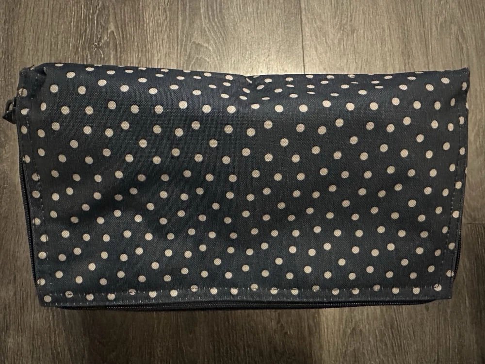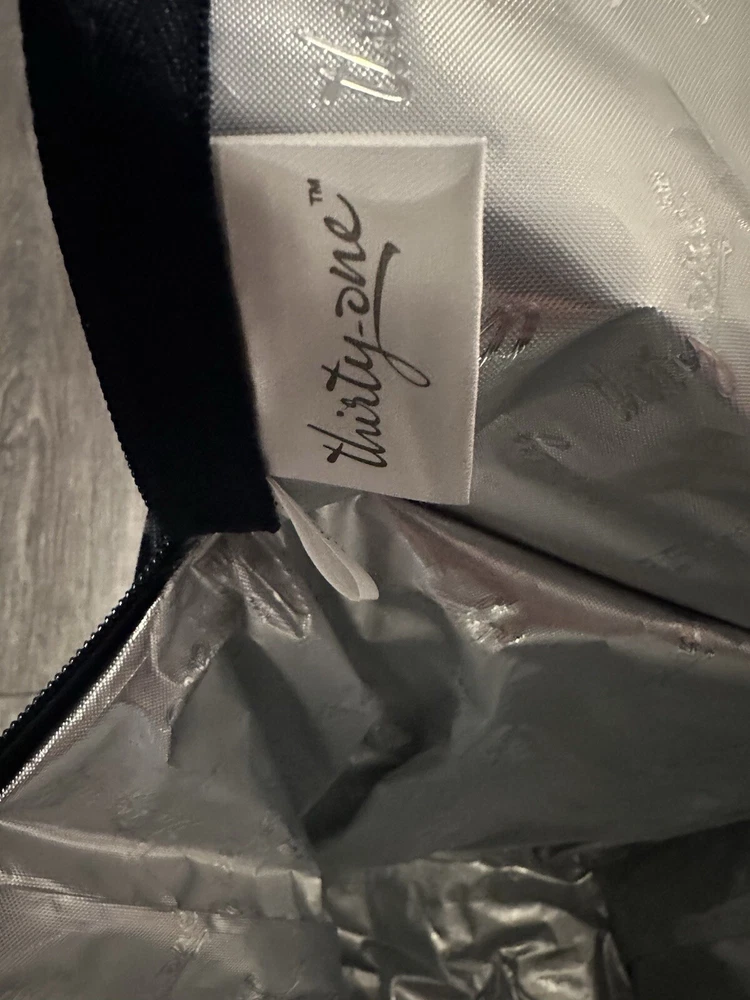 This Thirty-One Lunch tote bag is perfect for a day at the beach or a picnic in the park. The bag is designed with a blue exterior color and features an etched shells letter "B" design. It has a zip closure and measures 12 inches in width, 13 inches in height, and 7 inches in depth. The bag is made of polyester and has a nylon handle/strap material in blue color. The tote bag is insulated and has a gray lining color. The product line is Thirty-One Lunch and it is a medium-sized bag.